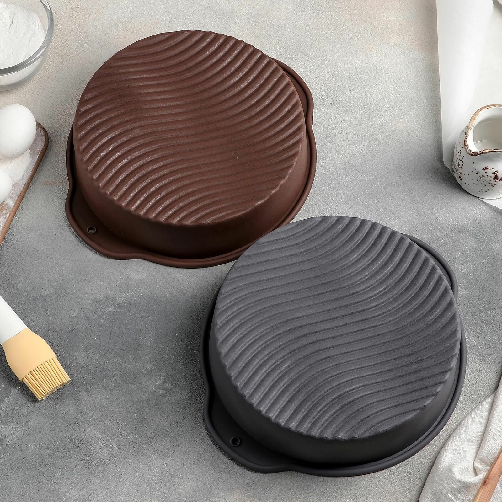 Форма для выпечки с ручками Доляна «Круг», силикон, 27×24×6 см, внутренний диаметр 22 см, цвет микс