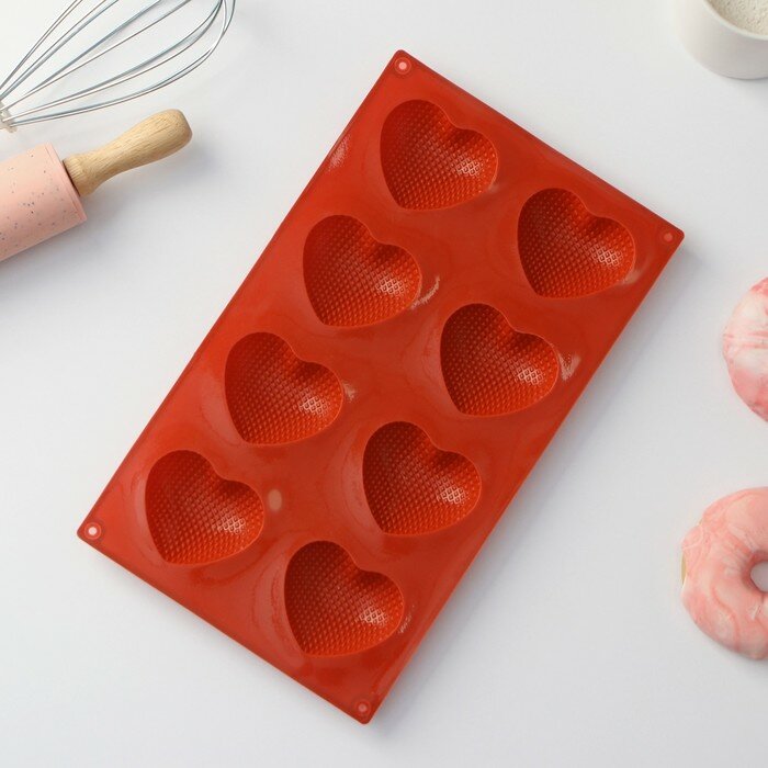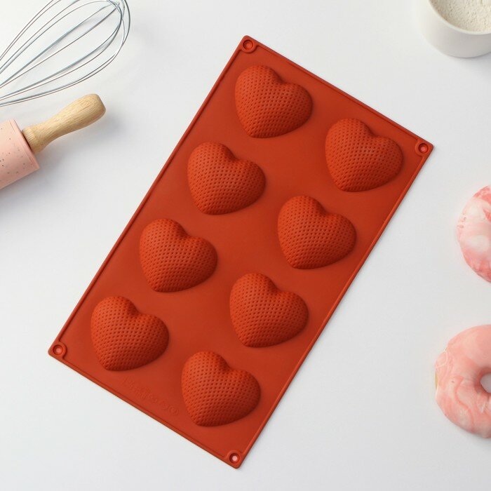 Купить Форма для выпечки Доляна «Сердце», силикон, 29×17×1.5 см, 8 ячеек (6×5×1.5 см), коричневая
