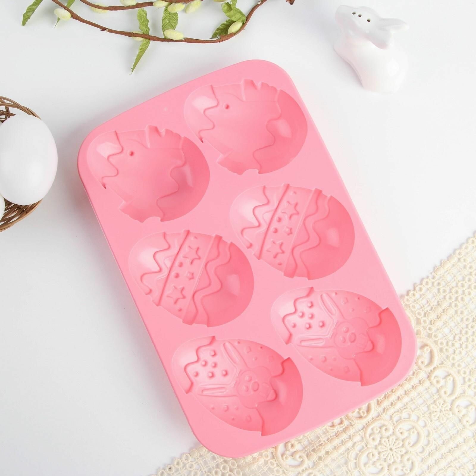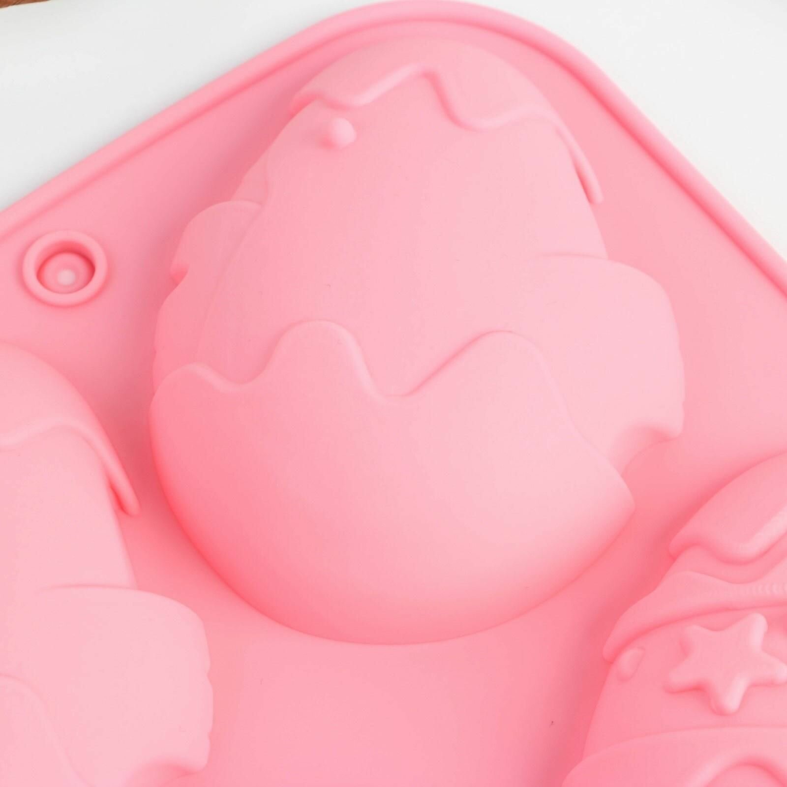 Форма силиконовая для выпечки Доляна «Пасха. Пасхальное яйцо», 15×12,6×2,5 см, 4 ячейки, цвет бирюзовый