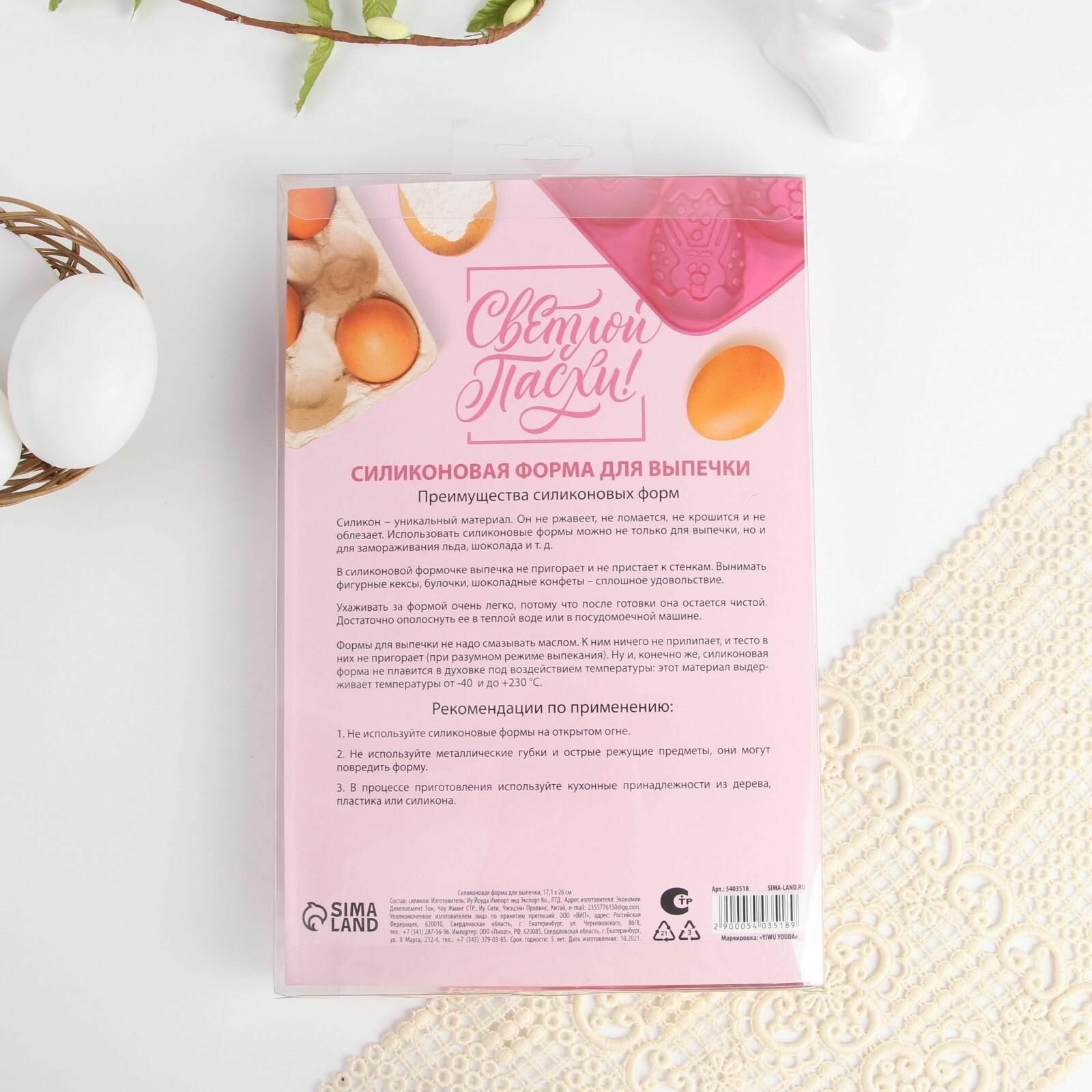 Форма для выпечки Доляна «Пасха. Пасхальный кролик», силикон, 27×17 см, 6 ячеек, цвет мятный