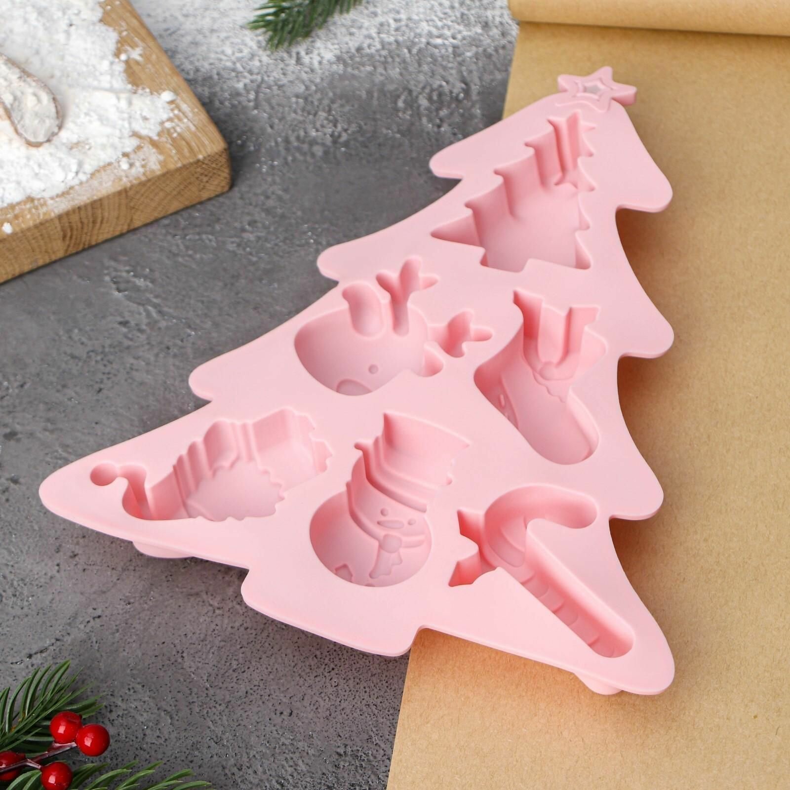 Купить Форма силиконовая для выпечки Новогоднее настроение, 23x19x2,5 см, 6 ячеек
