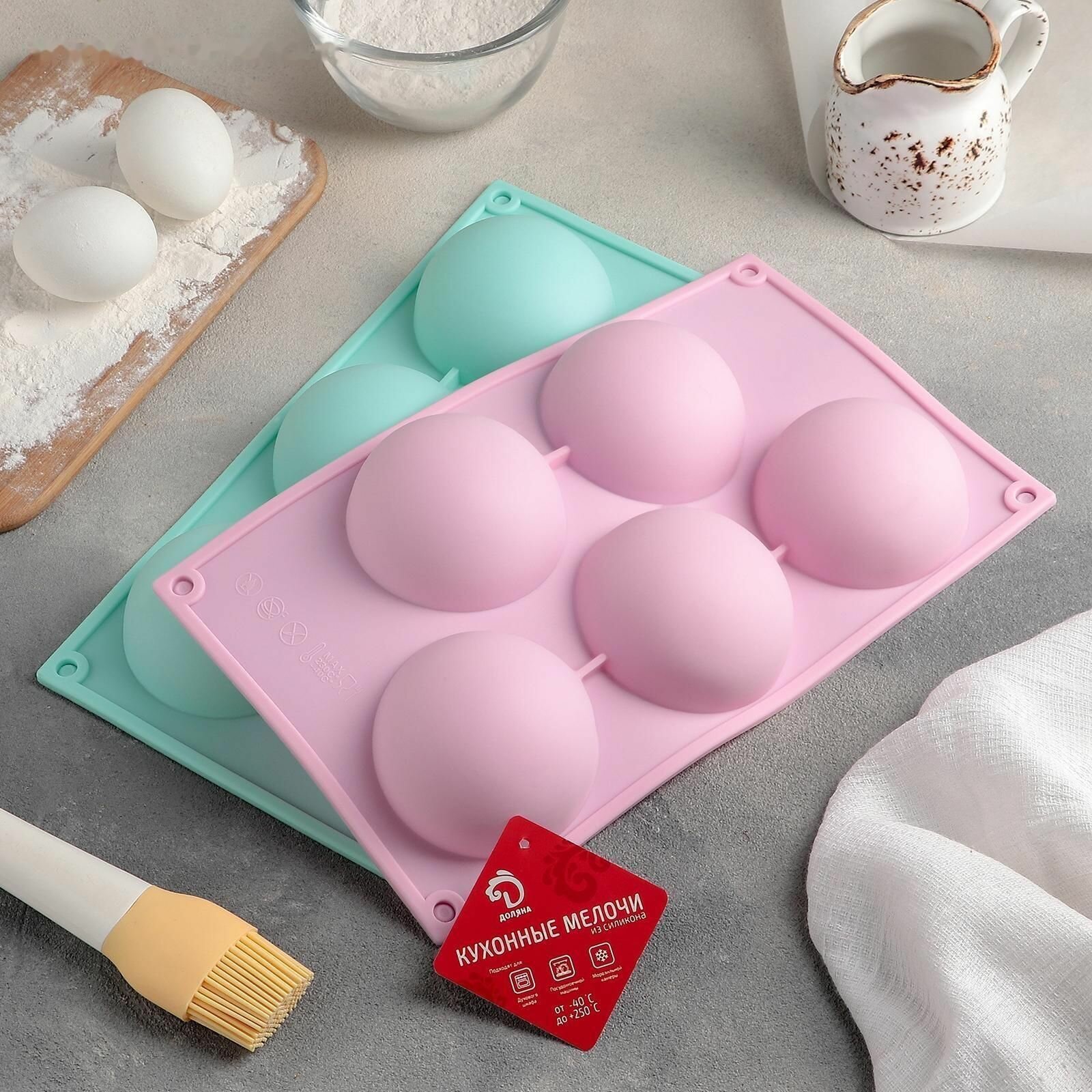 Форма силиконовая для муссовых десертов и выпечки, 30x17,5x4 см, 6 ячеек
