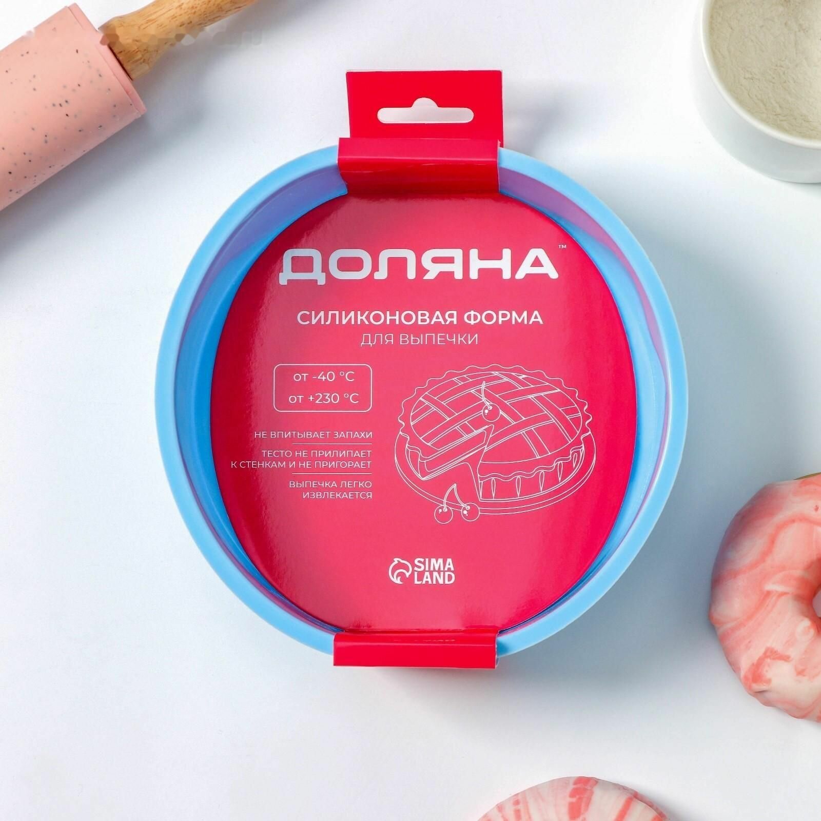 Форма для выпечки с ручками Доляна «Круг», силикон, 27×24×6 см, внутренний диаметр 22 см, цвет микс