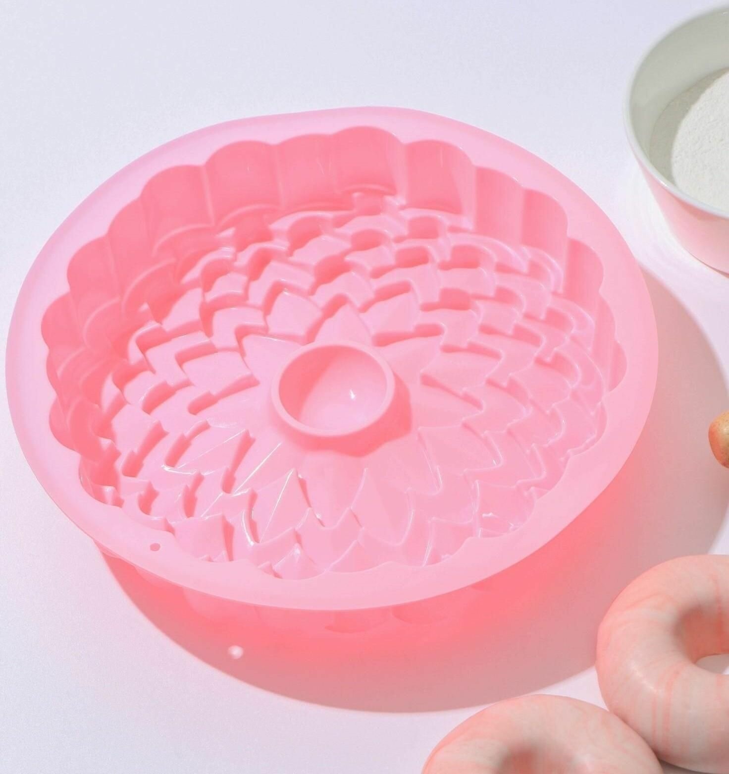 Форма для выпечки силиконовая Доляна «Подсолнух», 29×6 см, с ручками, цвет микс, 762777