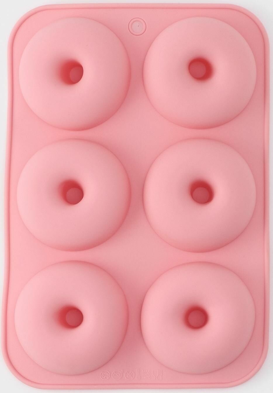 Форма силиконовая для выпечки Доляна «Сладости. Пончики», 29×17 см, 6 ячеек, d=6,8 см, цвет микс