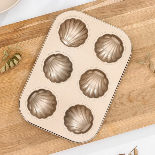 СохранитьФорма для выпечки "Голд", 26.5x18.5x2.5 см, 6 ячеек, антипригарное покрытие, золотистая интересное: