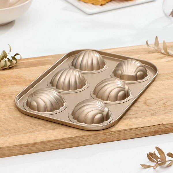 Купить Форма для выпечки "Голд", 26.5x18.5x2.5 см, 6 ячеек, антипригарное покрытие, золотистая