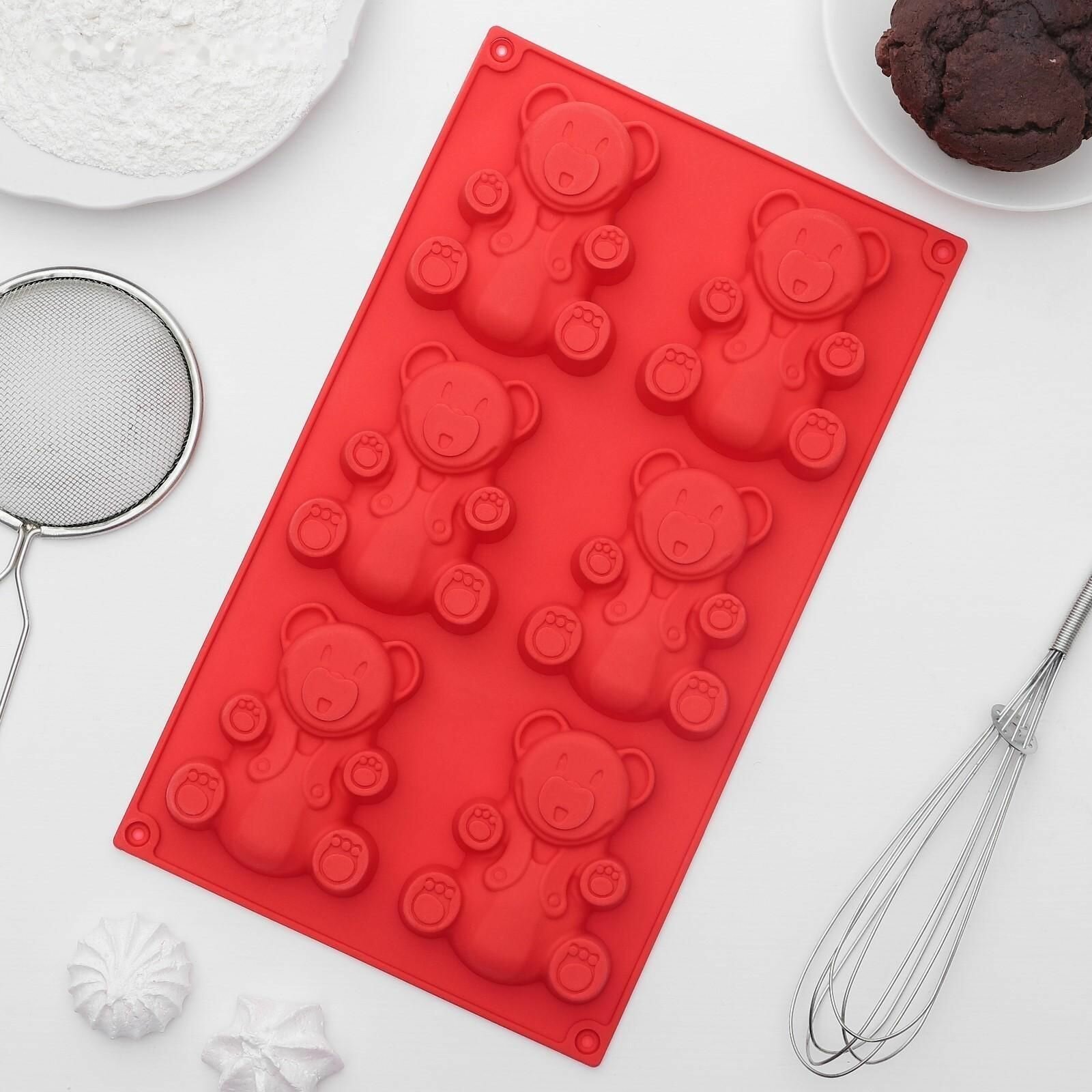 Купить Форма для выпечки силиконовая Мишка, 28,5x17 см, 6 ячеек (8,5x6 см)