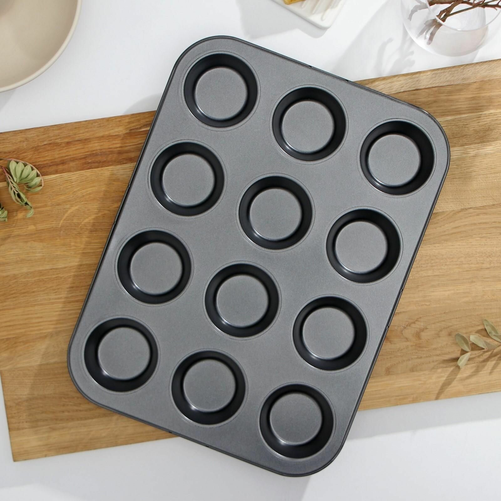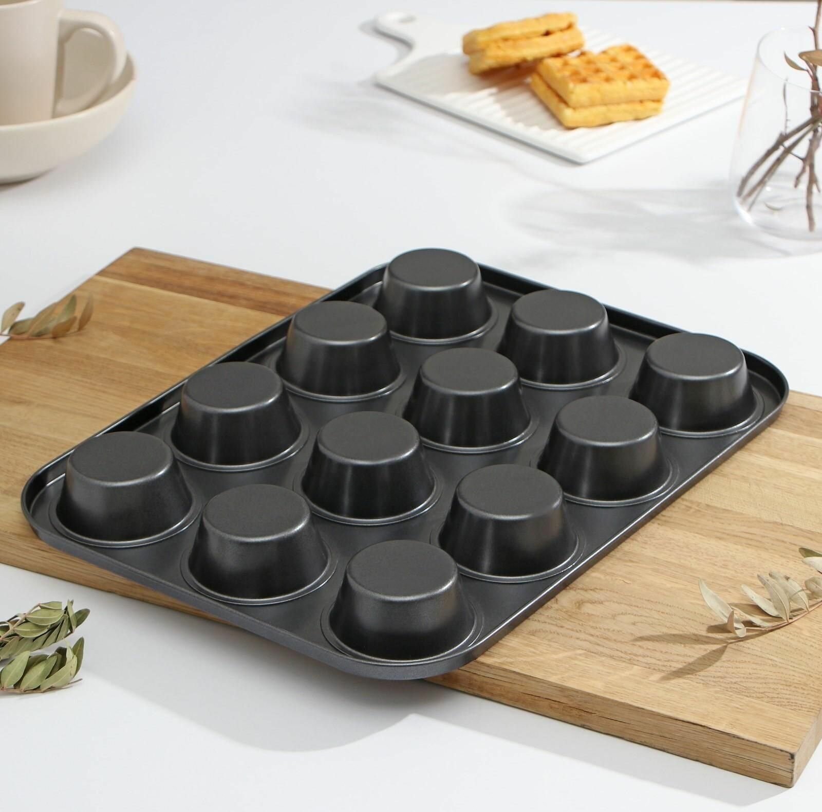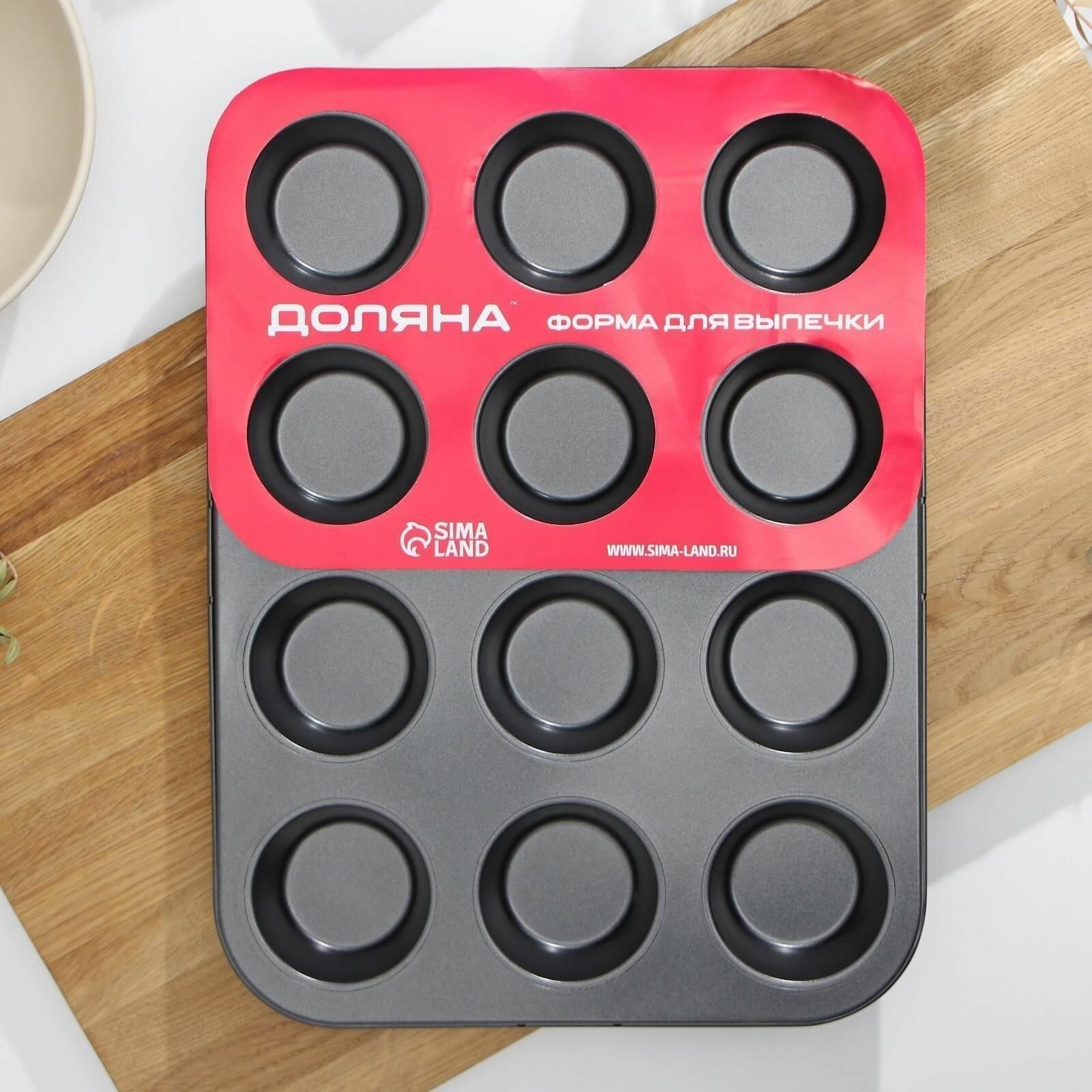 Форма для выпечки Доляна «Круг», 40×28×4 см, 12 ячеек, антипригарное покрытие, цвет чёрный