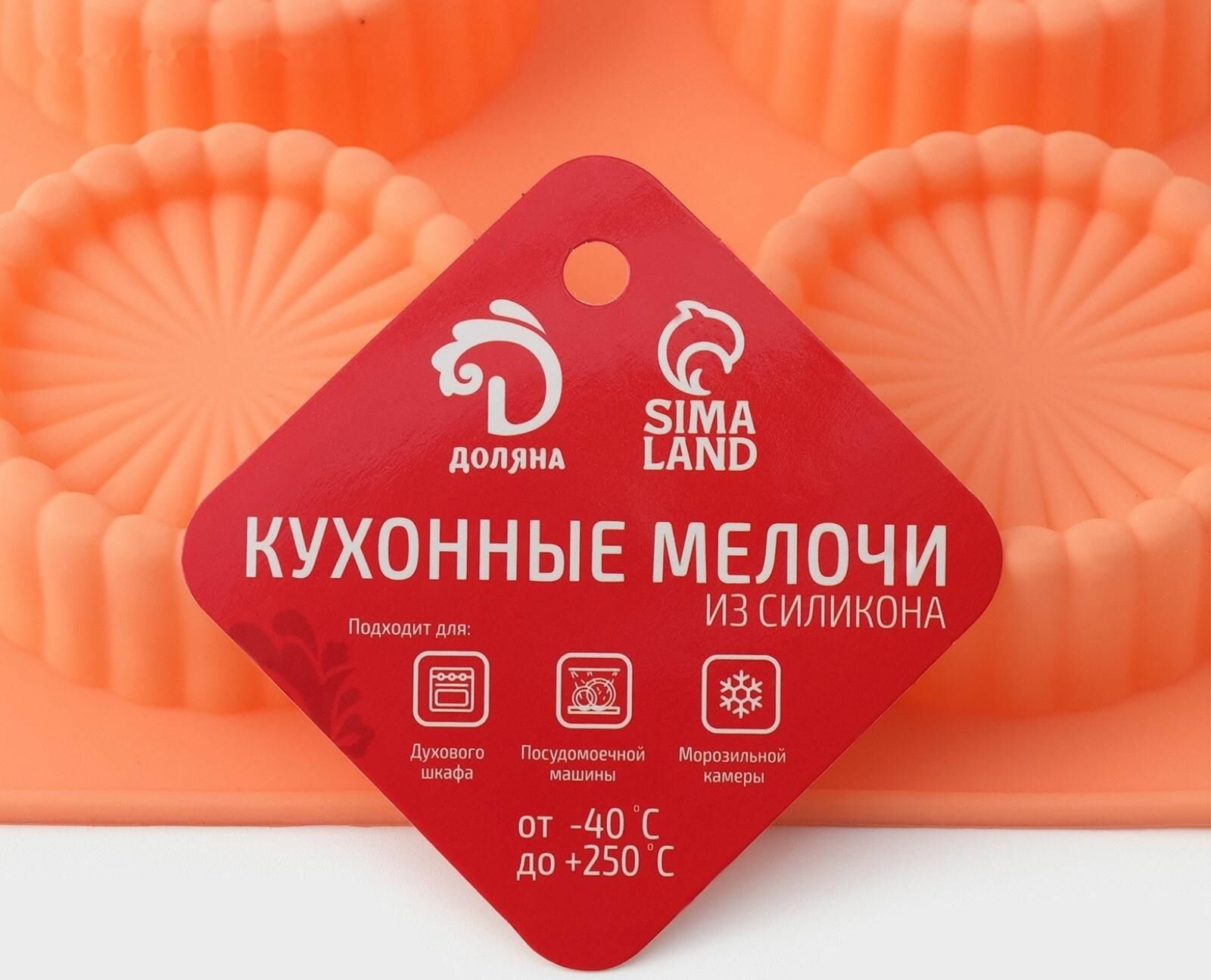 СохранитьФорма силиконовая для выпечки Доляна Конди , 8 ячеек (d 6 см), 29 17 2,1 см, цвет оранжевый интересное: