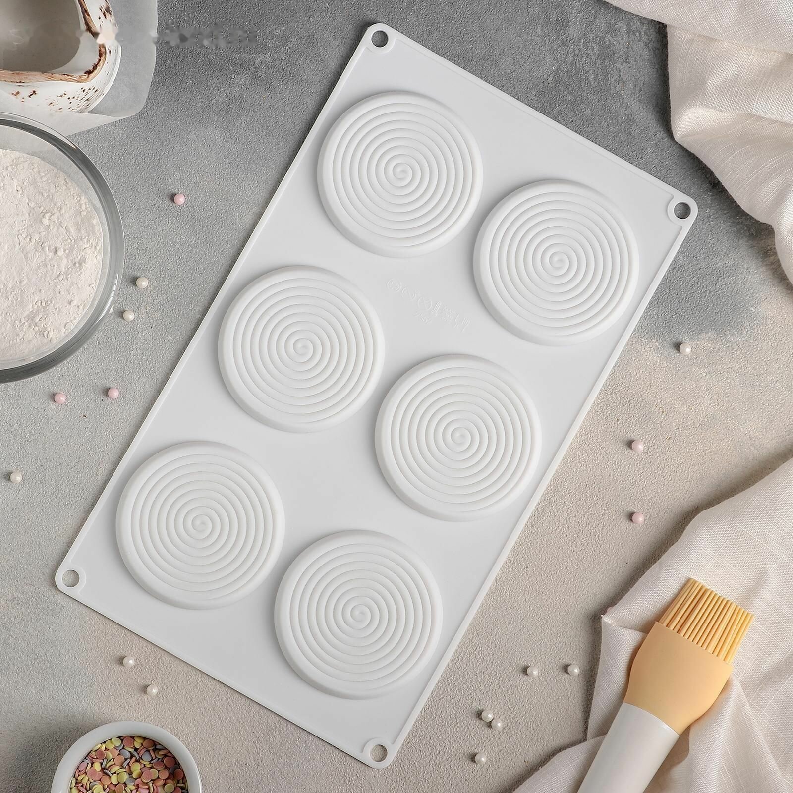 Форма силиконовая для муссовых десертов и выпечки, 30x17x3 см, 5 ячеек