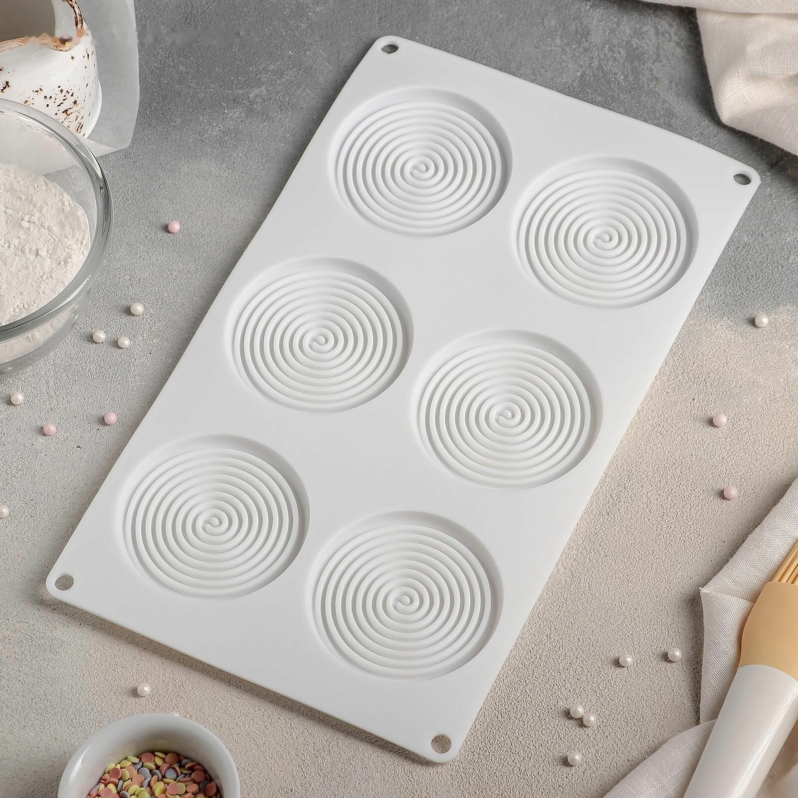 Форма силиконовая для муссовых десертов и выпечки, 30x17,5x4 см, 6 ячеек