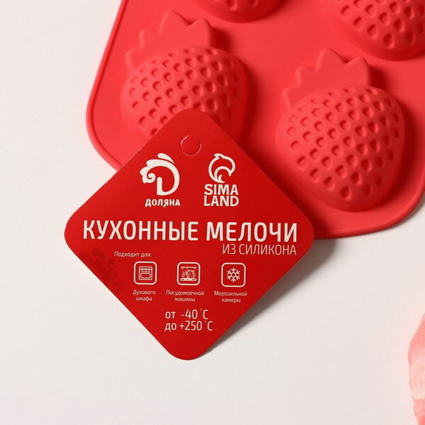 Купить Форма для выпечки "Клубника", силикон, 19x11x1.5 см, 6 ячеек