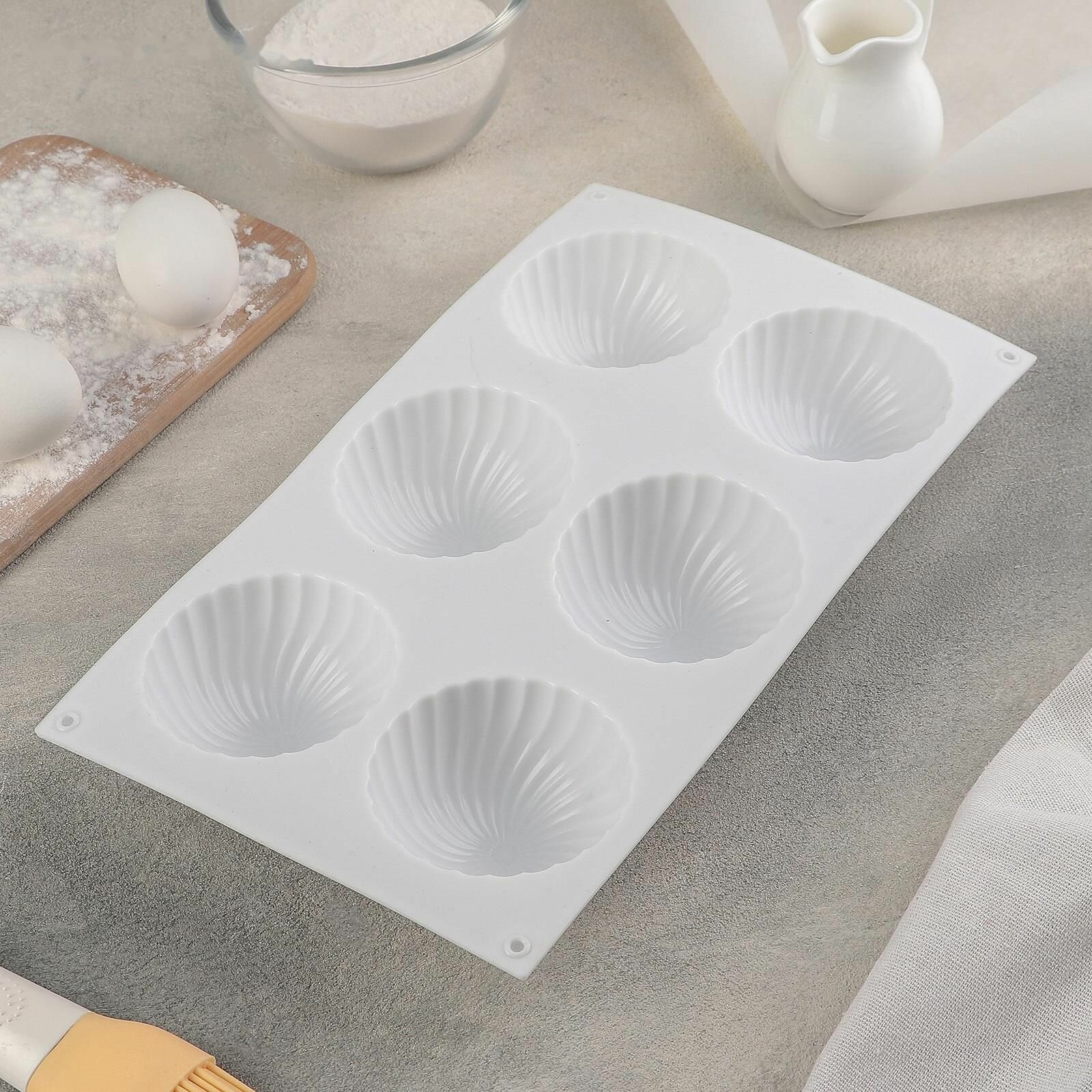 Форма силиконовая для муссовых десертов и выпечки, 30x17x3 см, 5 ячеек