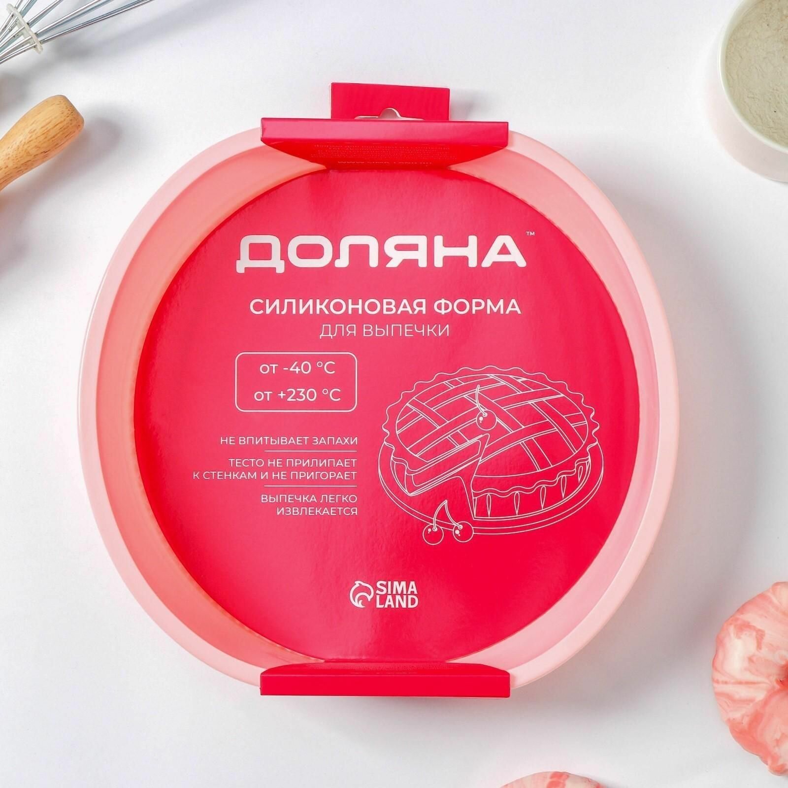 Форма для выпечки с ручками Доляна «Круг», силикон, 27×24×6 см, внутренний диаметр 22 см, цвет микс