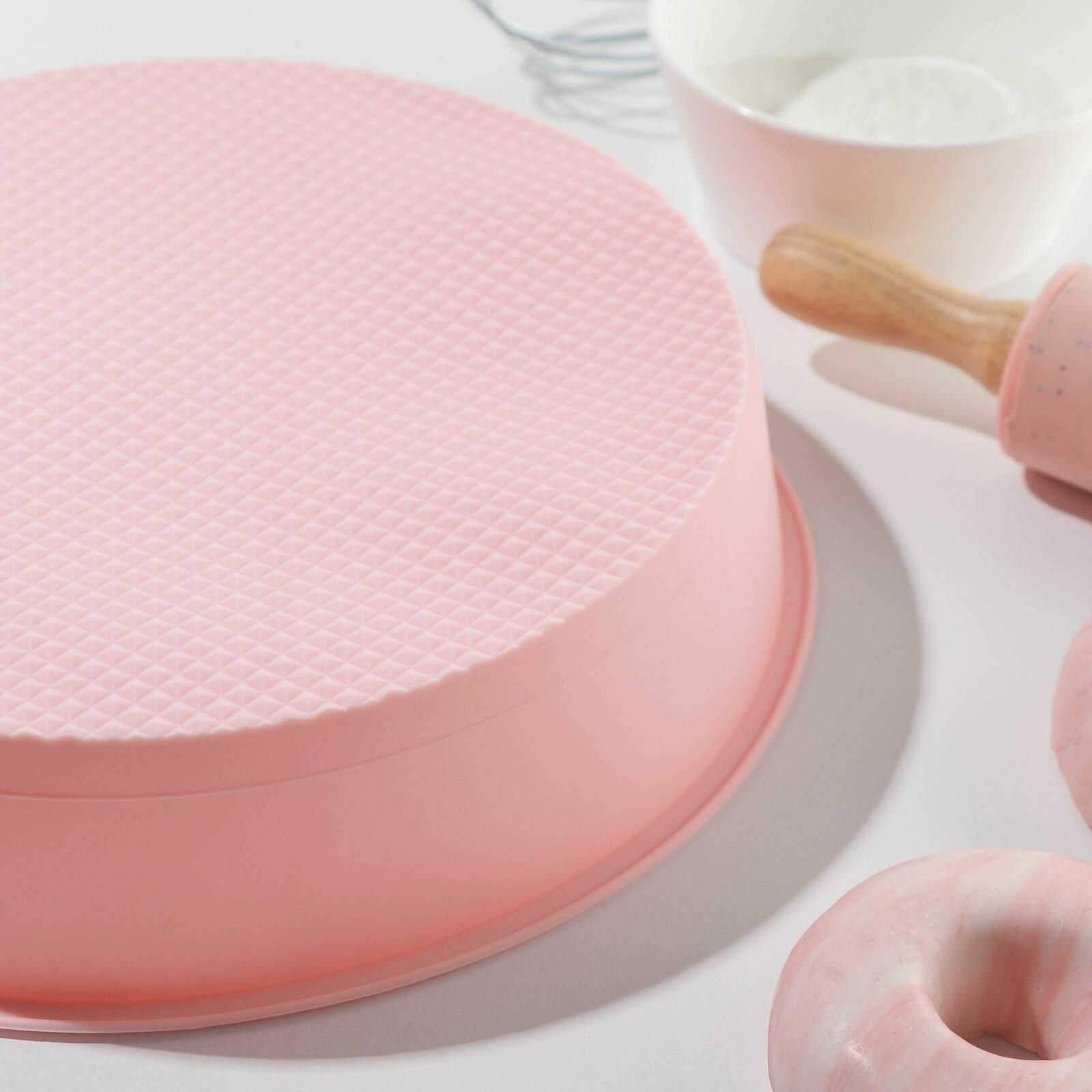 Форма силиконовая для выпечки Доляна «Немецкий кекс. Вихрь», d=24,5 см, цвет розовый, 1687522