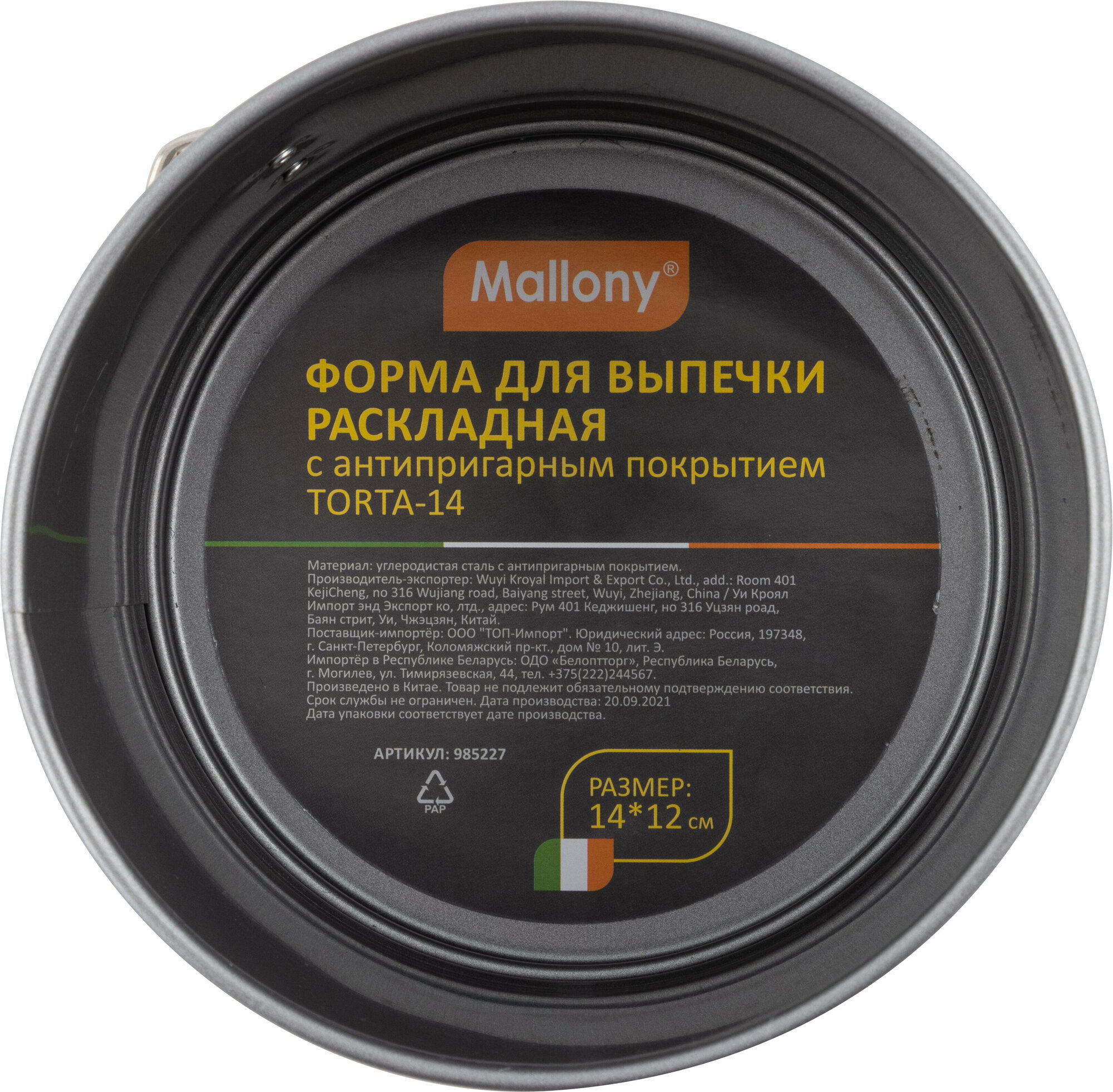 Форма для выпечки разъемная с антипригарным покрытием Mallony Torta, 14 x 12 см интересное: