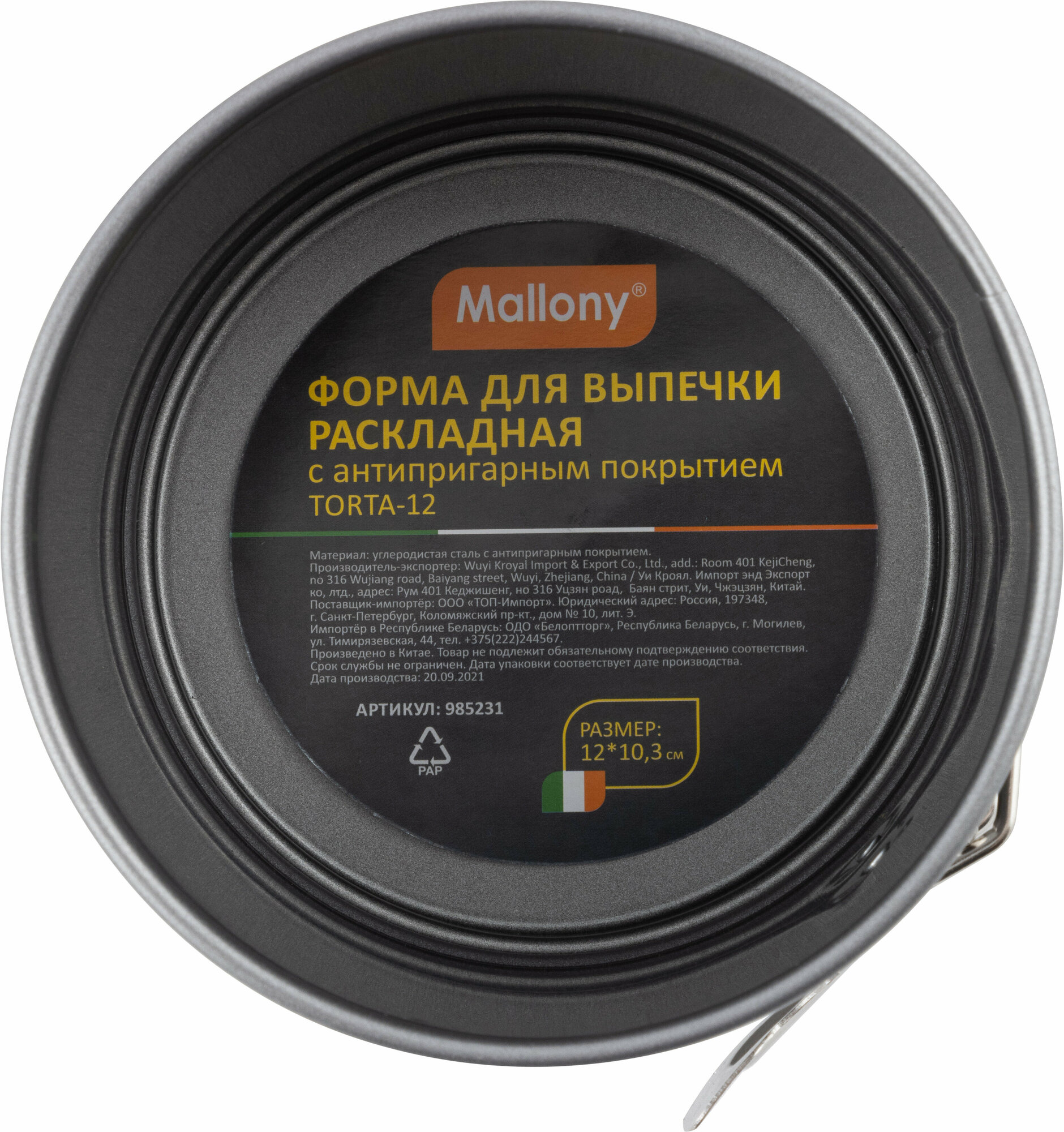 Форма для выпечки раскладная с антипригарным покрытием Mallony Torta, 12 x 10.3 см интересное: