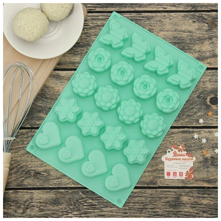 Купить Форма силиконовая для выпечки Доляна «Сердце, бабочка, цветок», 29,8×19,7 см, 20 ячеек, цвет микс