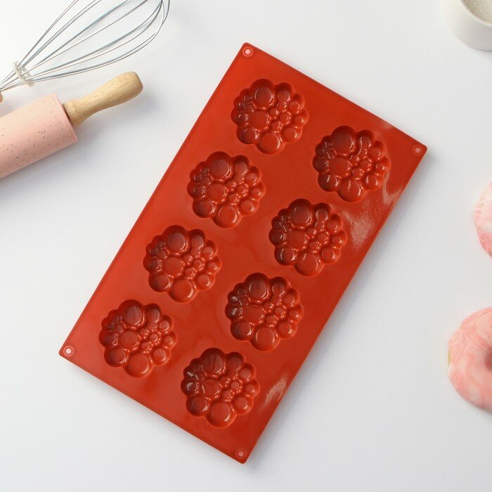 Купить Форма силиконовая для выпечки Доляна «Пузыри», 29×17×1,5 см (6×6×1,5 см), 8 ячеек, цвет коричневый