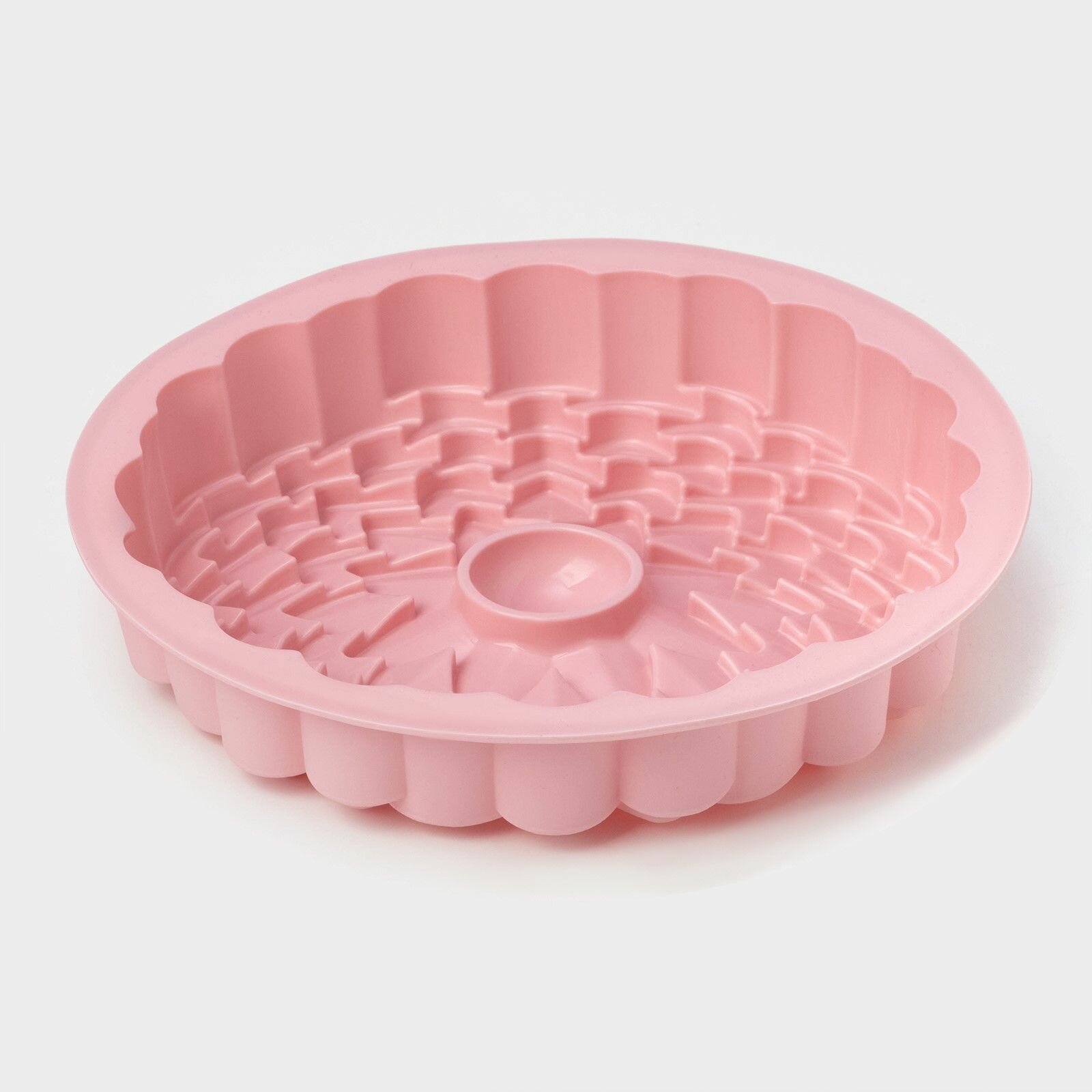 Форма для выпечки Доляна «Ромашка», силикон, 23×4,5 см, цвет розовый