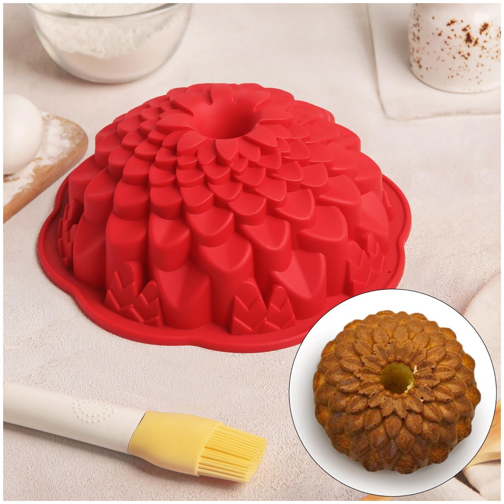 Купить Форма для выпечки Доляна Хризантема , силикон, d 22 см, цвет розовый