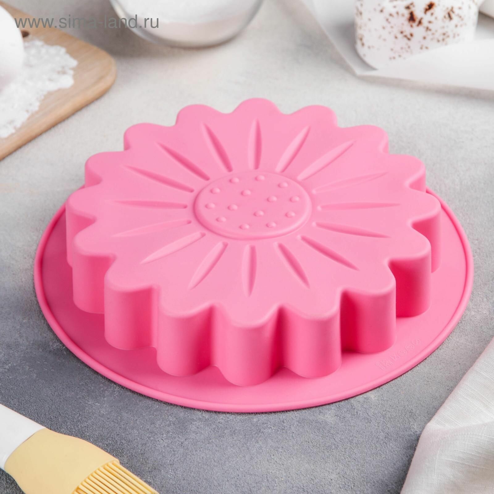 Форма для выпечки Доляна «Ромашка», силикон, 23×4,5 см, цвет розовый