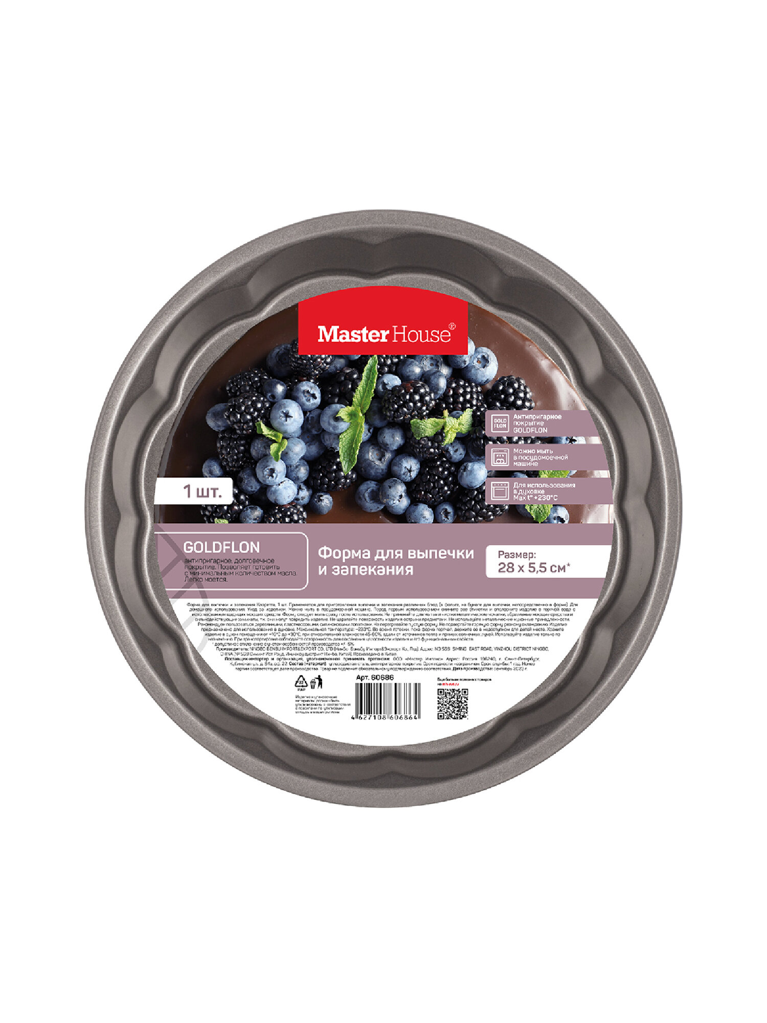 СохранитьФорма для запекания 28х5,5 Клоретта Master House, круглая фигурная, антипригарная интересное: