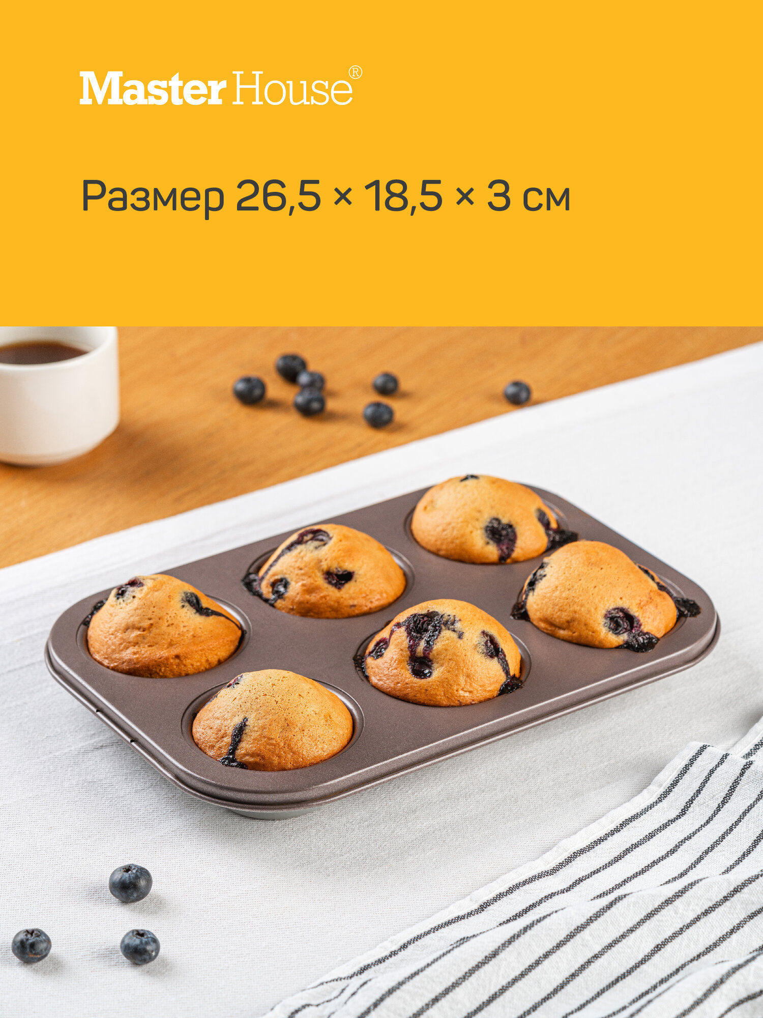 Купить Форма для выпечки куличей кексов маффинов 26,5х18,5х3см Бобетта Master House, 6 кексов антипригарная
