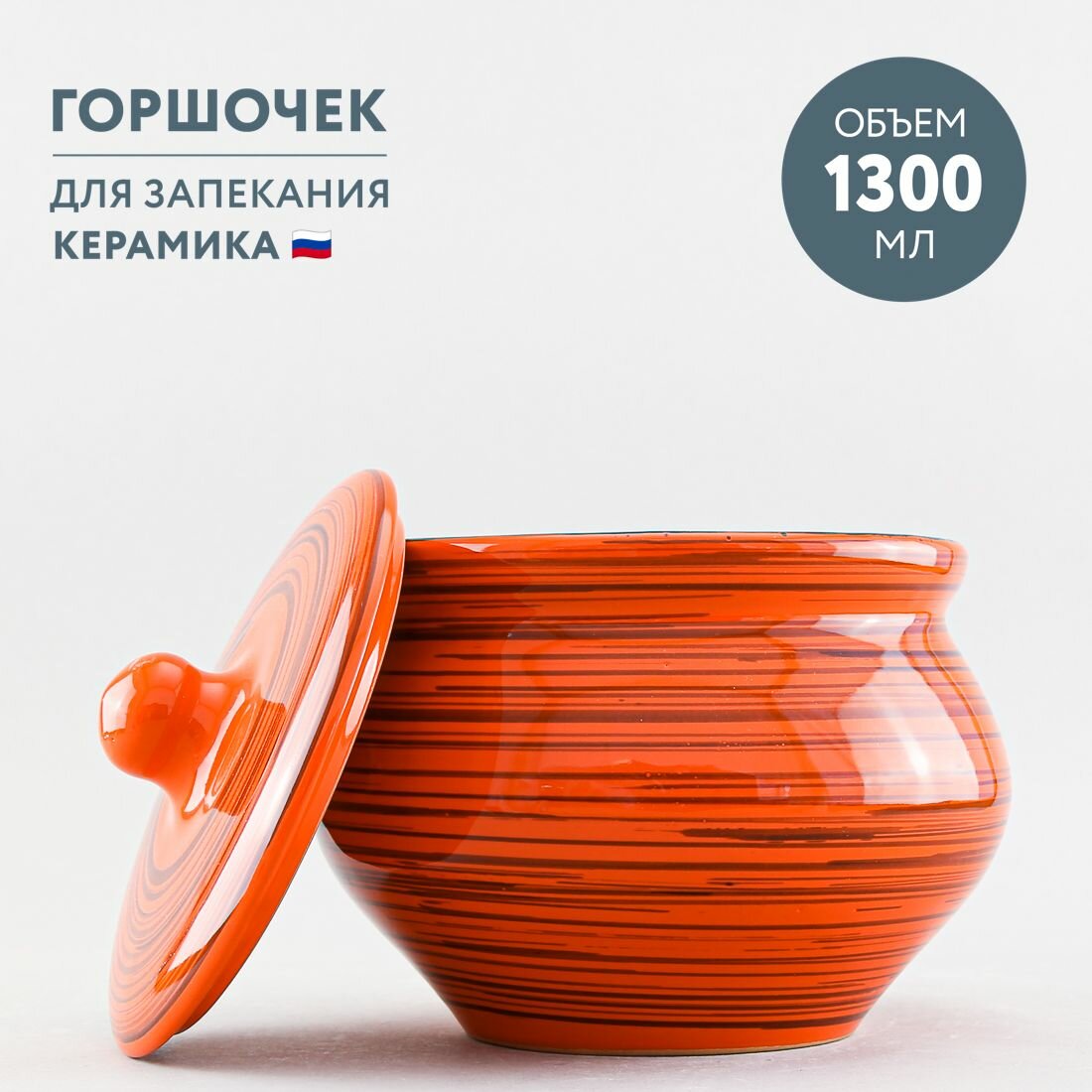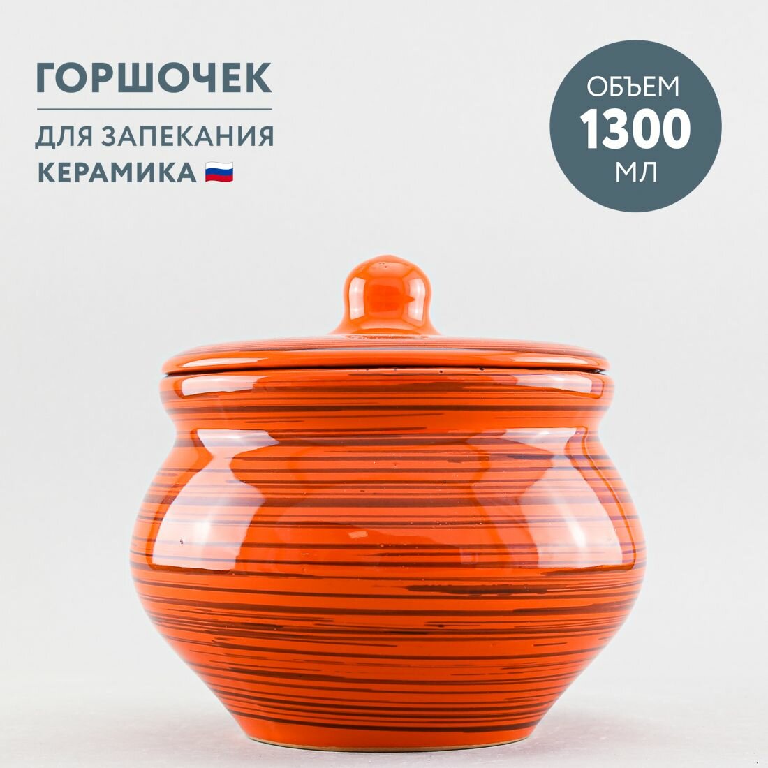Горшочек для запекания 1300 мл Борисовская керамика Оранжевая полоска интересное:
