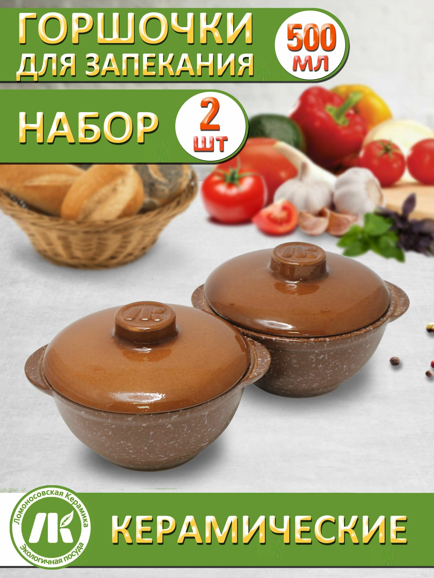 Горшочки для запекания в духовке, форма для выпечки, жульена, 500мл "Ломоносовский" мрамор, набор 2шт, керамика интересное: