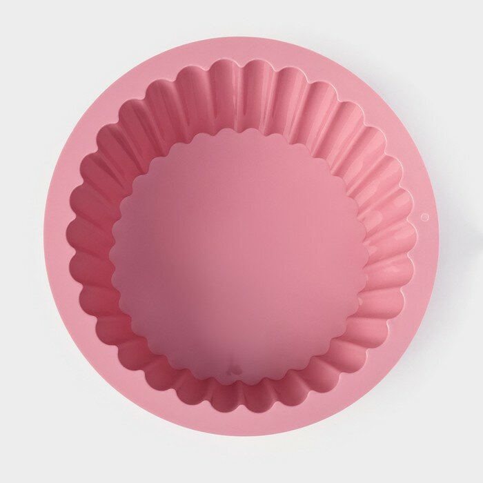 Купить Доляна Форма для выпечки Доляна «Рифленый круг», силикон, 19×19×8,5 см, цвет розовый