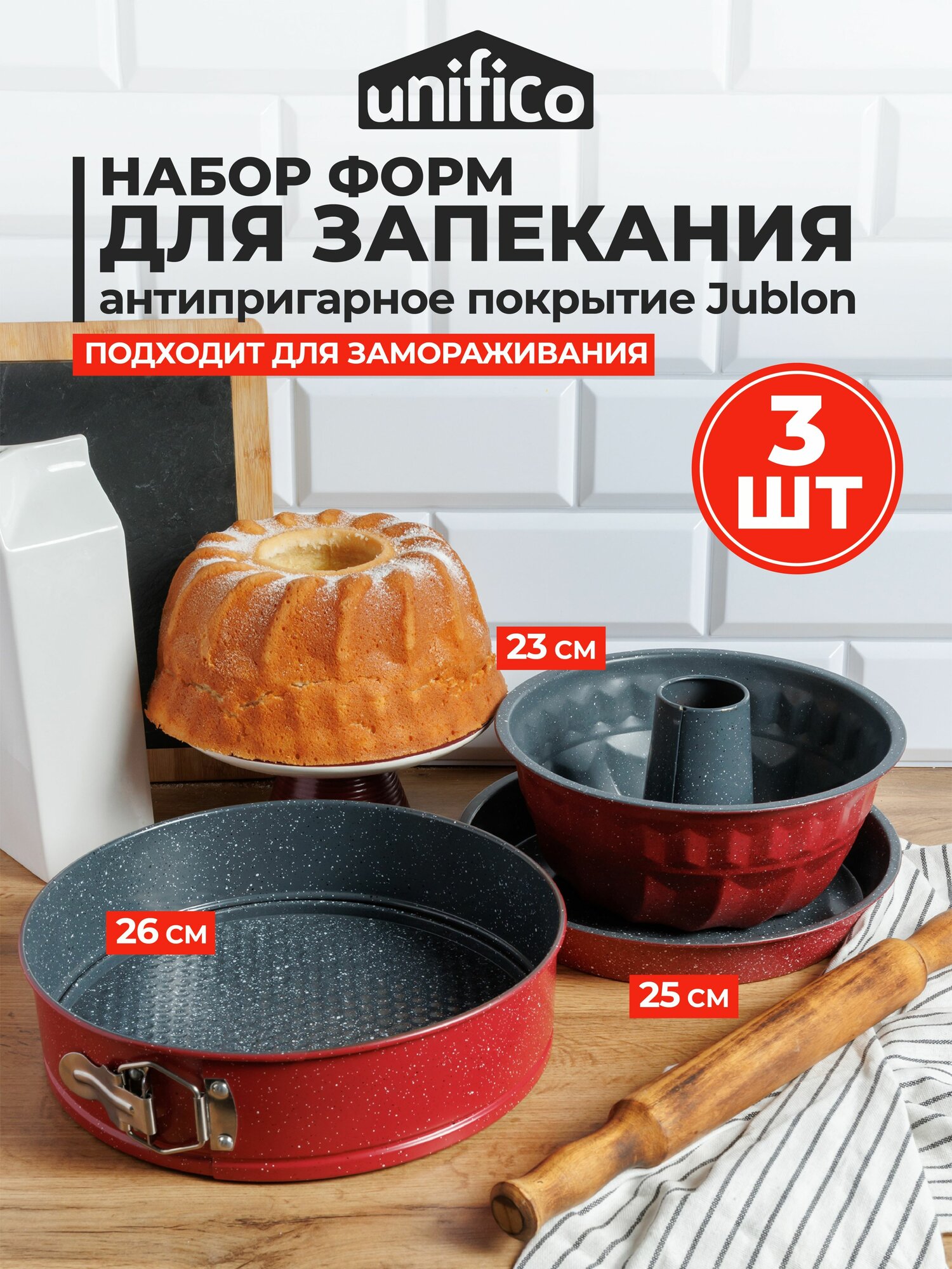 Формы для выпечки набор 3 шт UNIFICO Сrimson, круглые (углеродистая сталь) интересное: