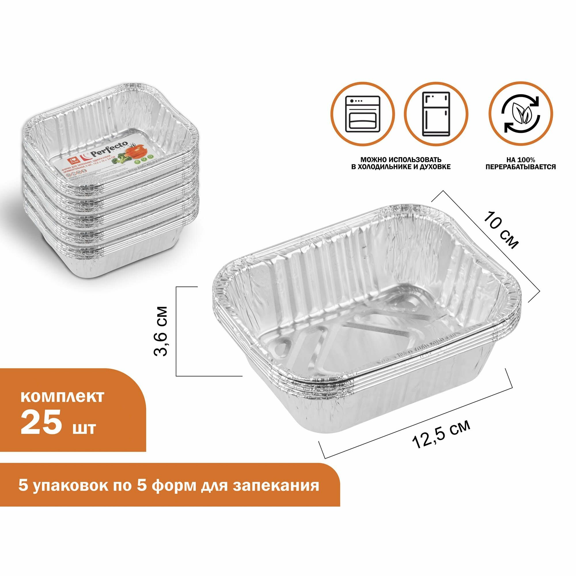 Форма для запекания алюминиевая одноразовая, прямоугольная, 5 шт12.5х10х3.6 см PERFECTO LINEA (45-513104)