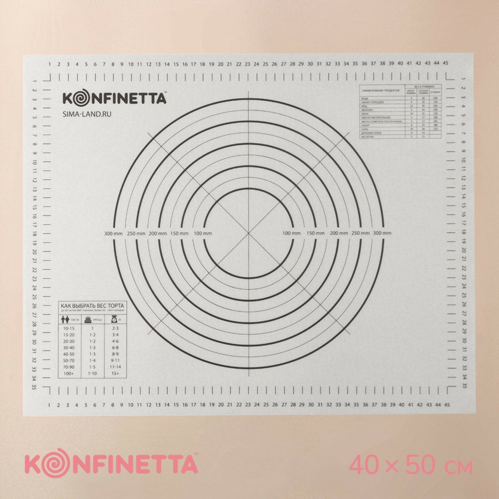 СохранитьКоврик для выпечки и раскатки теста с разметкой армированный, силикон, 40x50 см, 0.44 мм, чёрный интересное: