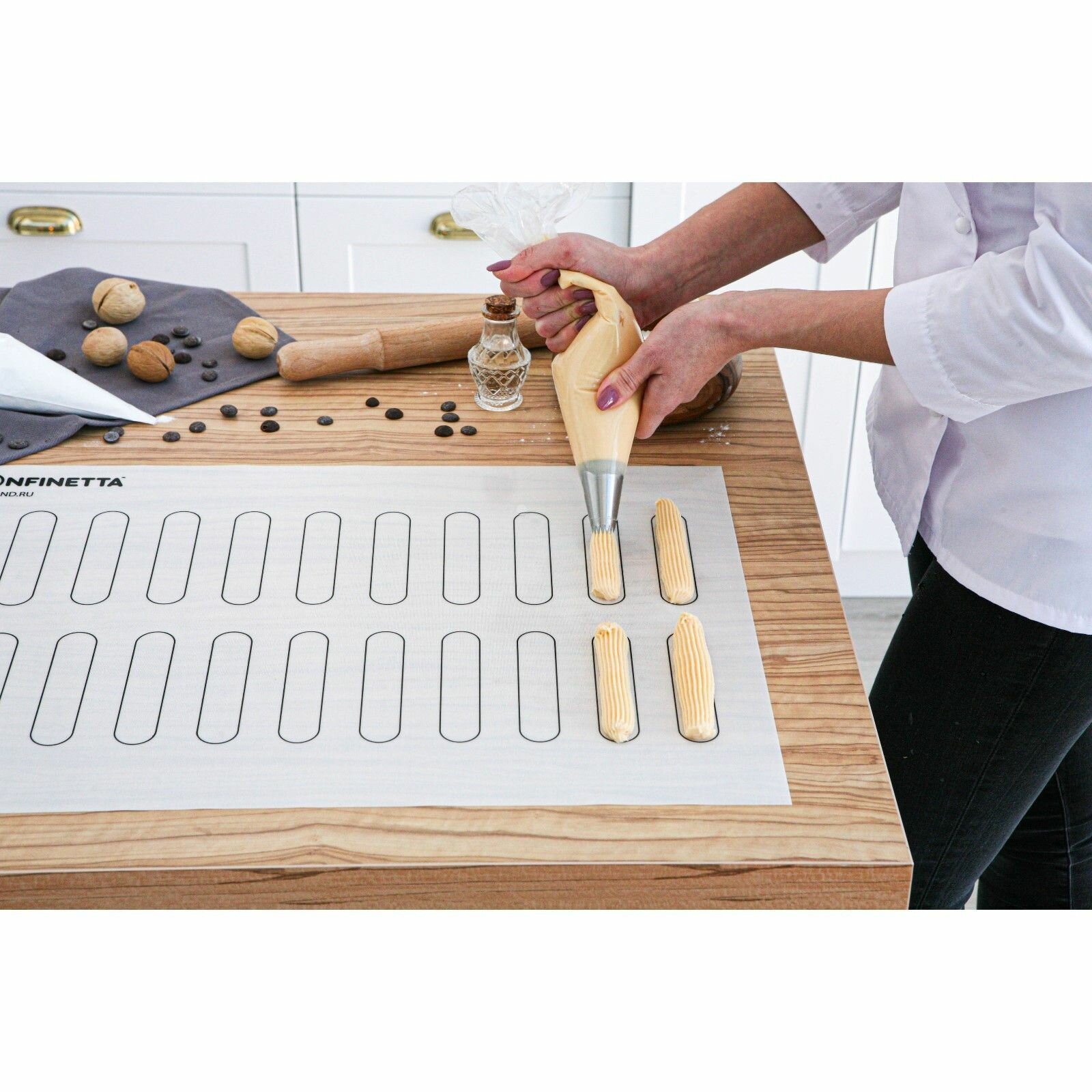 Купить Коврик для выпечки армированный KONFINETTA Эклер , силикон, 40 60 см, 0,4 мм, белый, 3 уп