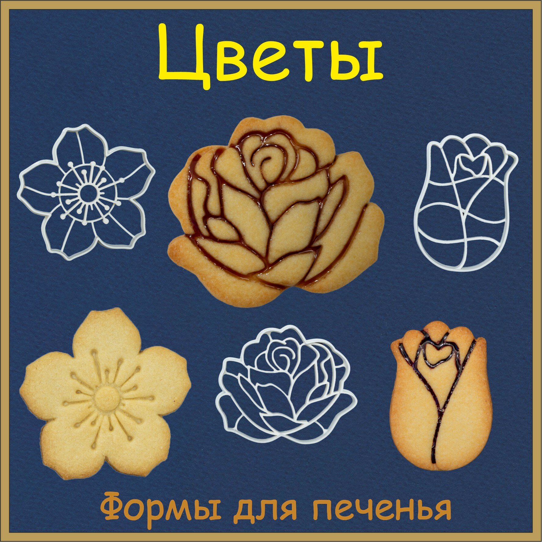 "Цветы: Роза, Сакура, Тюльпан" формочки для печенья, пряников, трафареты для вырезания фигурного печенья 3 шт интересное: