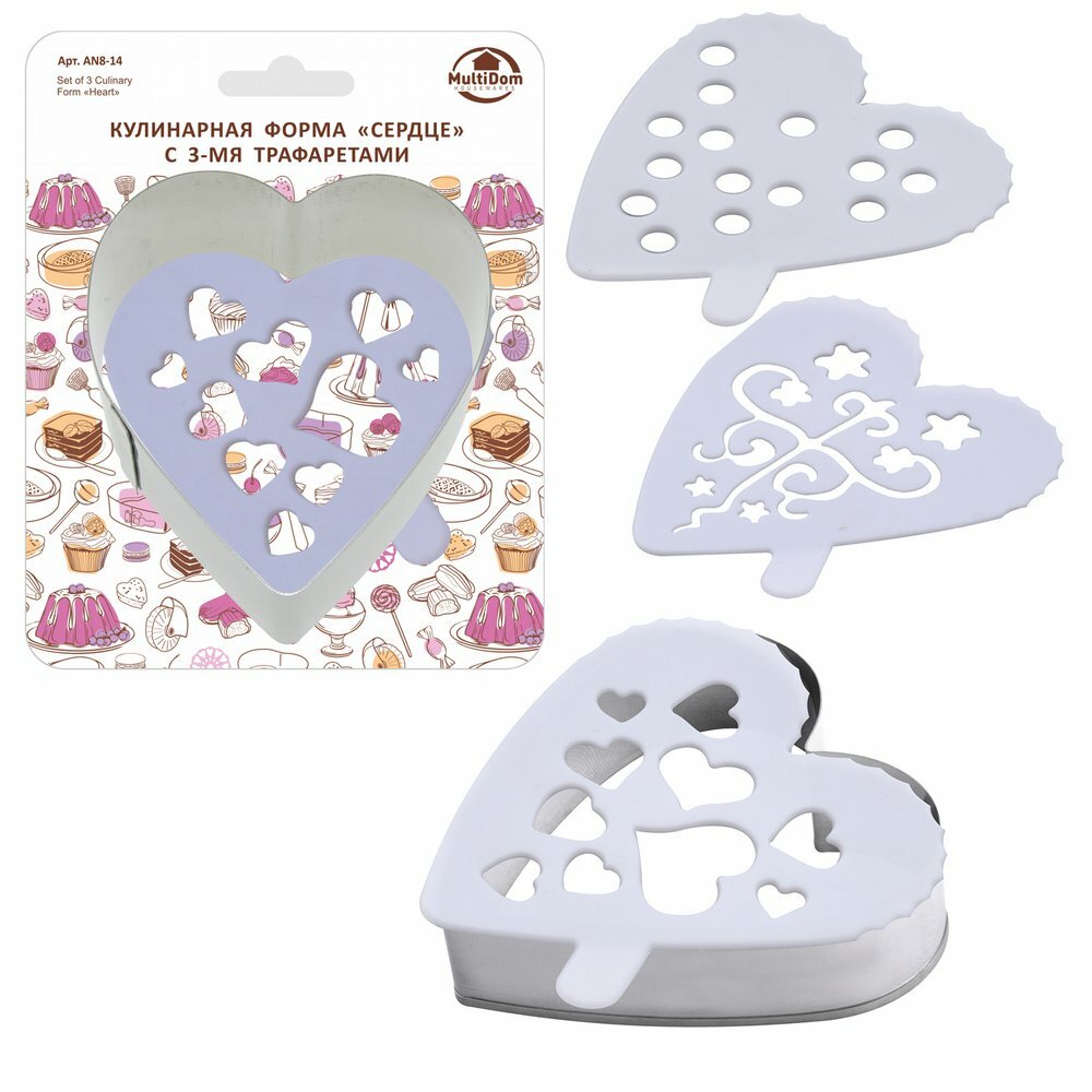 Купить Кулинарная форма "Сердце" с 3 трафаретами, 8х7,5см, высота 2,5см