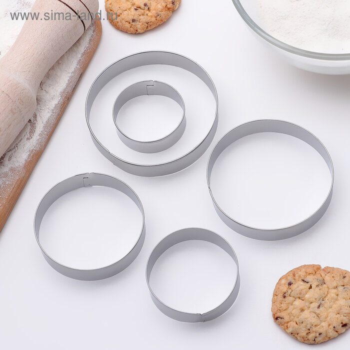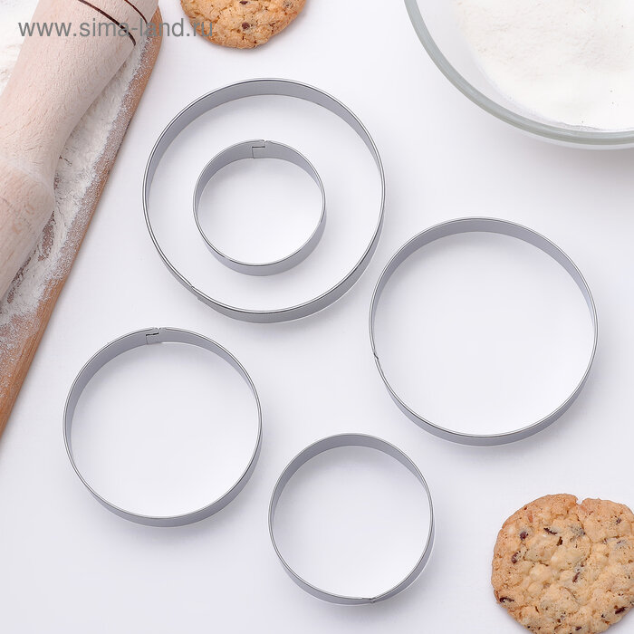 Набор форм для вырезания печенья Доляна «Круг», 5 шт: 3,1 см, 3,6 см, 4 см, 4,6 см, 5 см, цвет серебряный, 3863468 интересное: