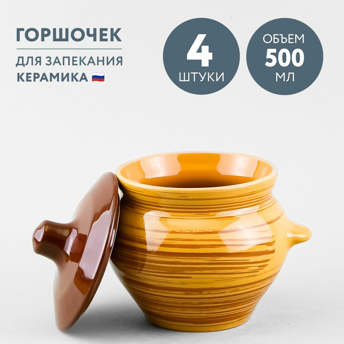 Набор из 4 горшочков для запекания 500 мл Борисовская керамика Стандарт интересное: