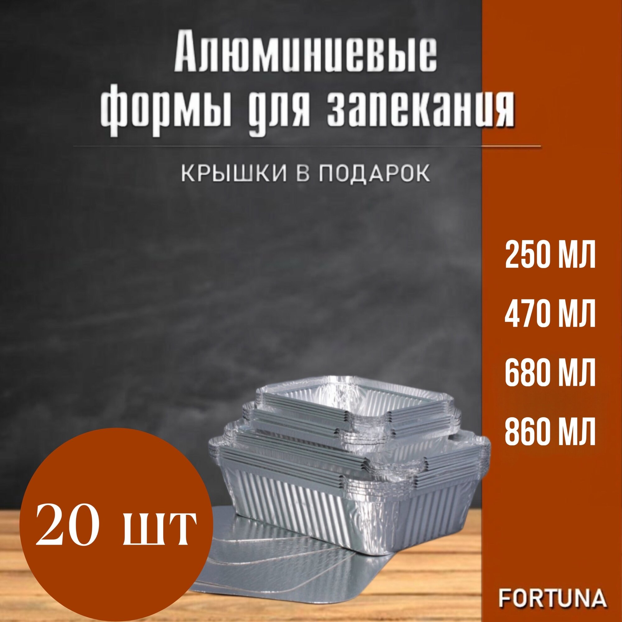 Набор алюминиевых форм для выпечки из фольги 250/470/680/860 мл прямоугольные, антипригарные, 20 штук интересное: