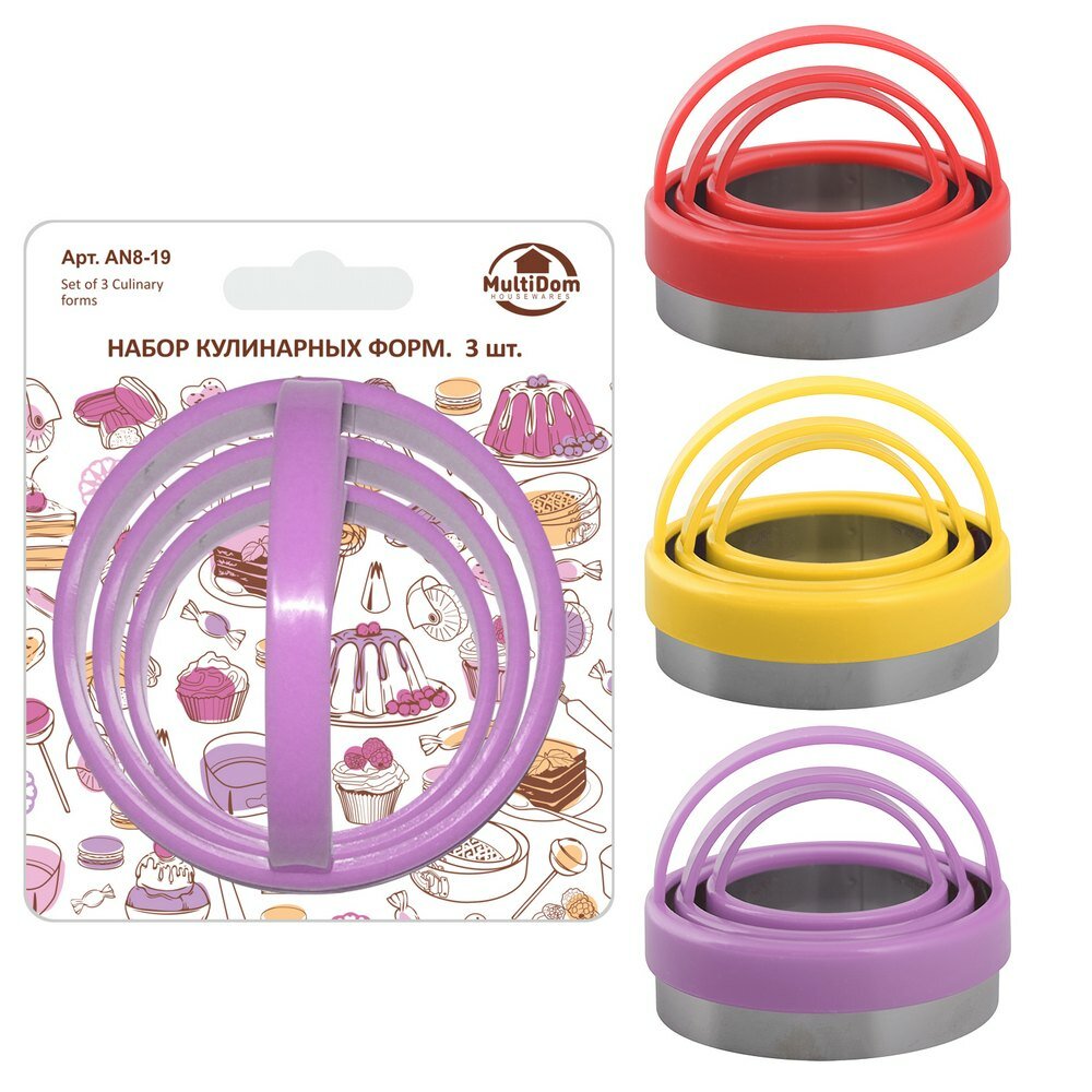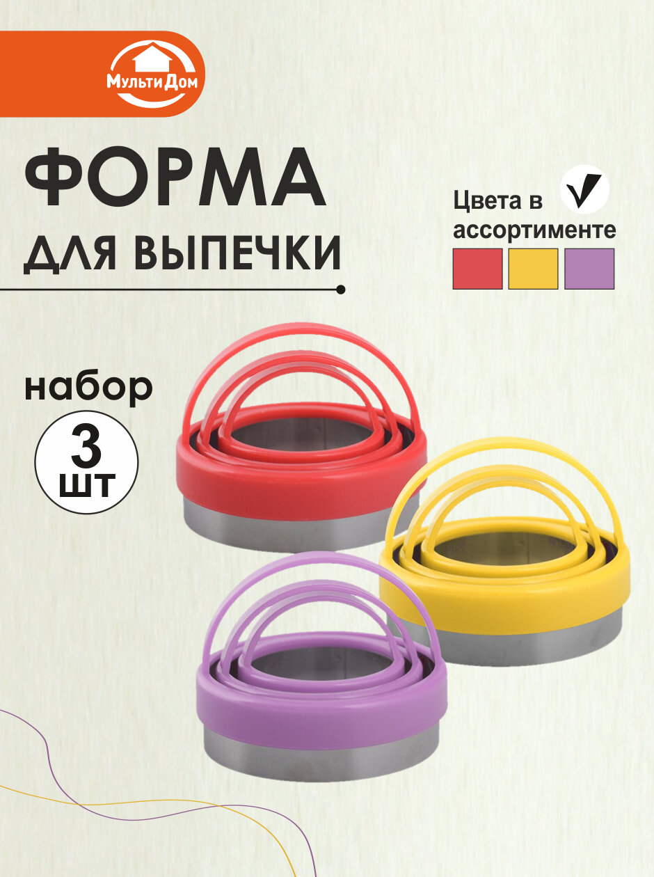 Форма для выпечки , нержавеющая сталь, пластиковая ручка, набор 3 шт. (4.5 см, 6 см и 7см) интересное: