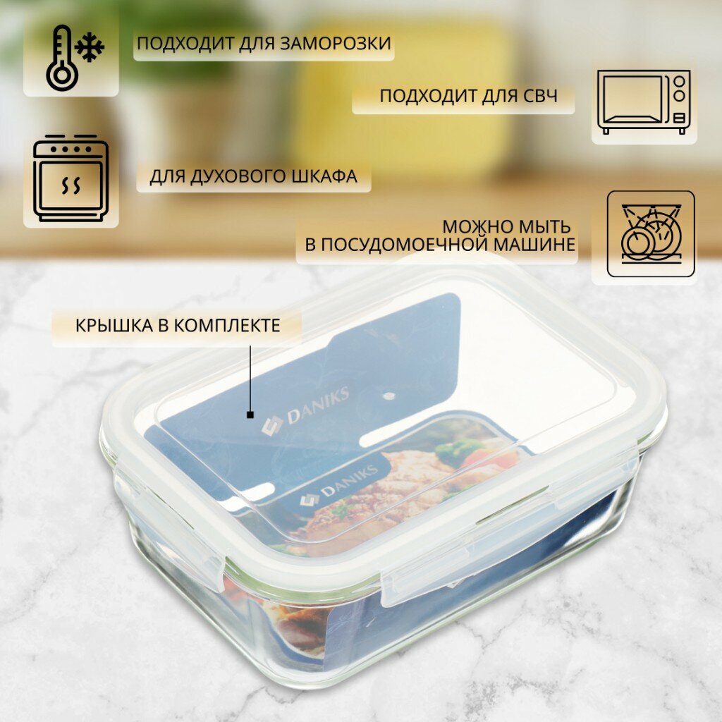 Купить Daniks Форма для запекания прямоугольная с крышкой 13.3х19х6.7, стеклянная
