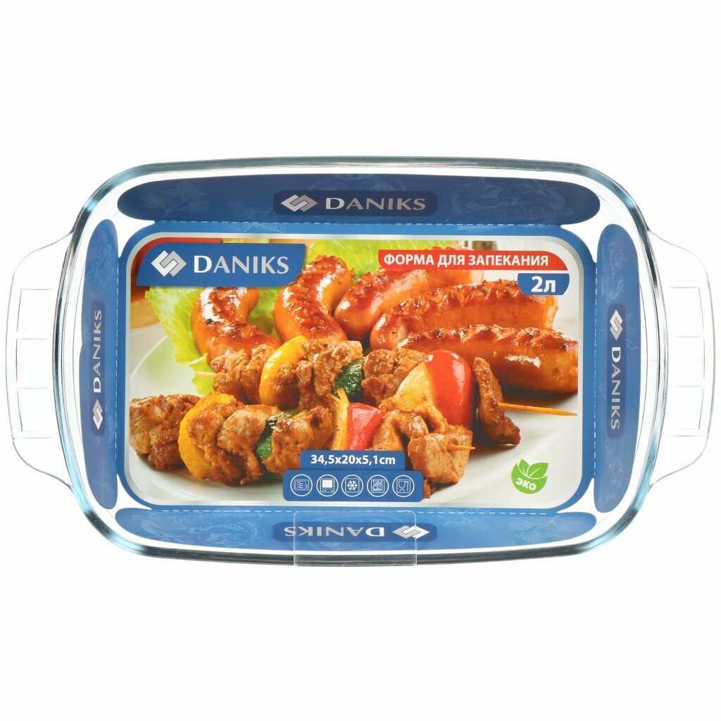 Daniks Форма для запекания прямоугольная, 20.6х34.5х5.2 см, стеклянная