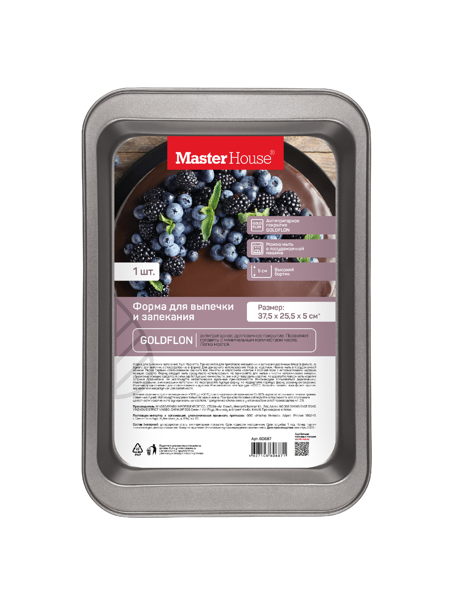 Форма для запекания 37,5х25,5х5 Мариетта Master House противень прямоугольный, антипригарный интересное: