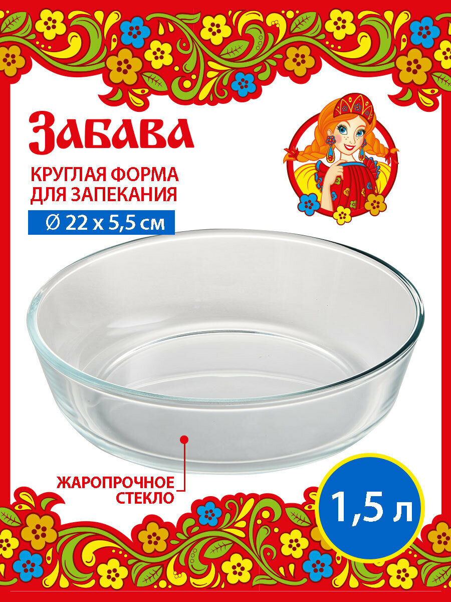 Круглая форма для запекания из жаропрочного стекла, забава РК-0016, 1,5л, 22.0*5.5см. интересное: