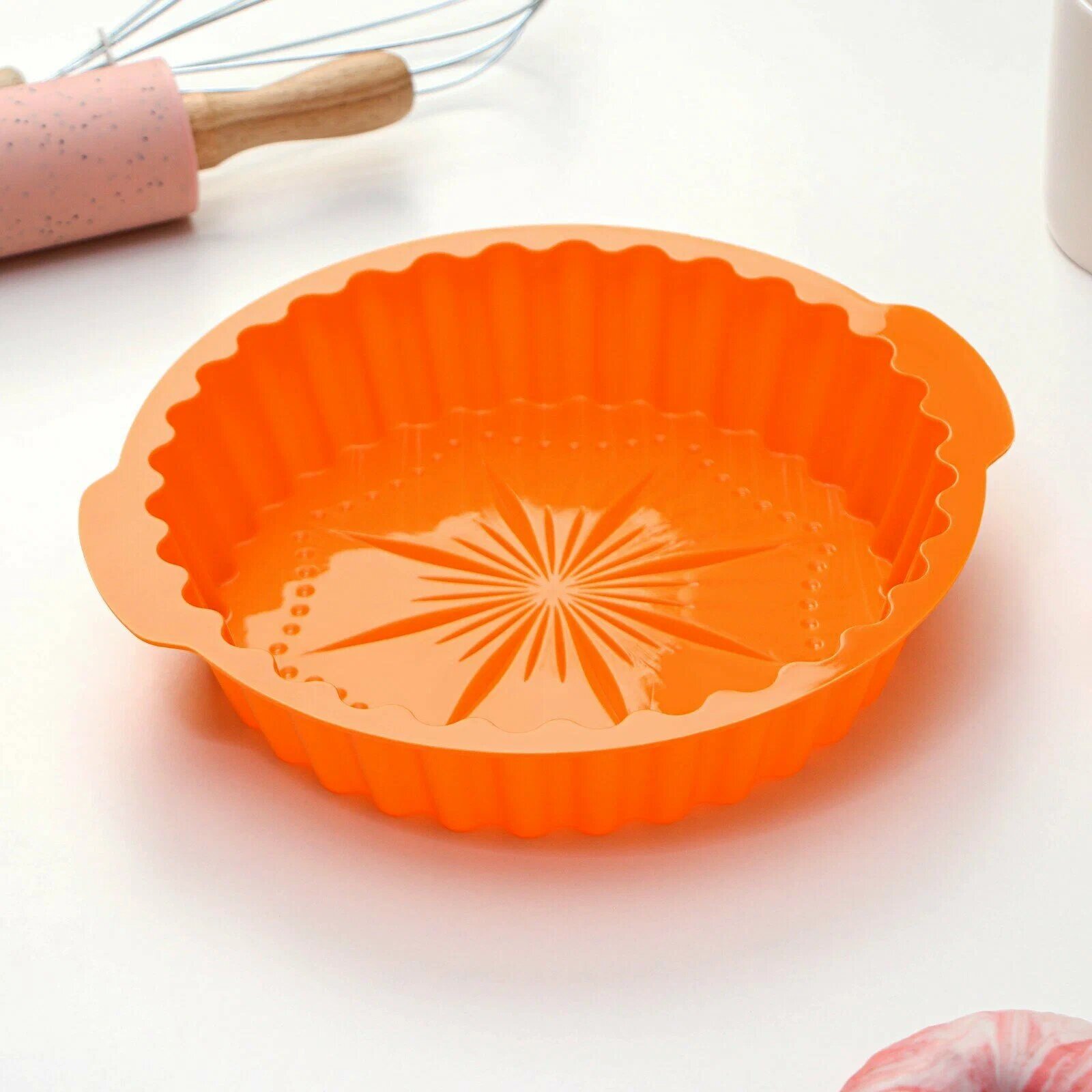 Купить Форма для выпечки Доляна «Рифлёный круг. Звезда», силикон, d=20 см, с ручками, цвет оранжевый