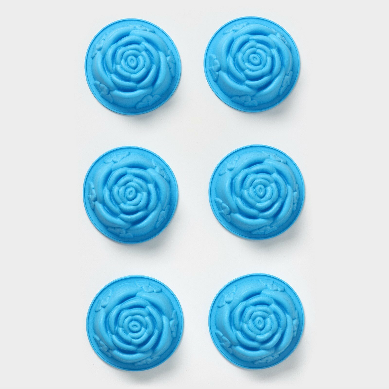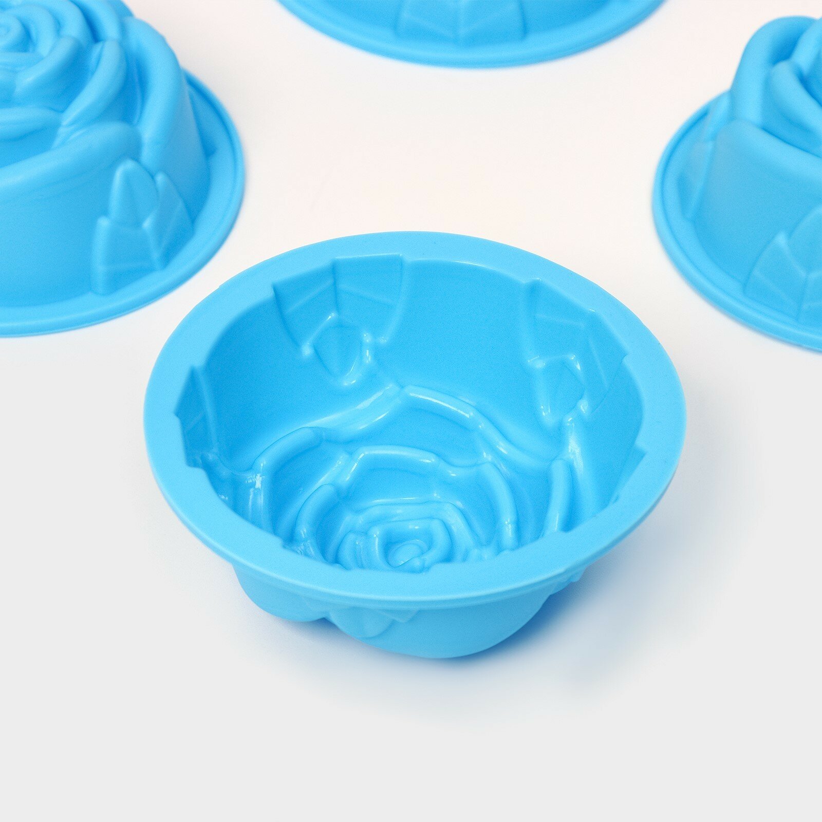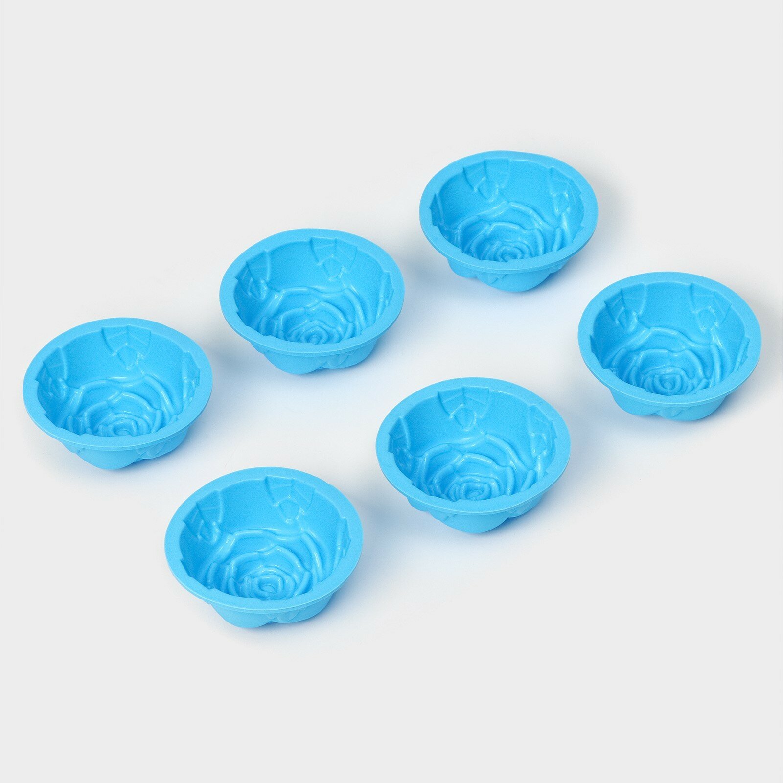 Купить Набор силиконовых форм для выпечки «Роза», 8×3 см, 6 шт, цвет синий-голубой