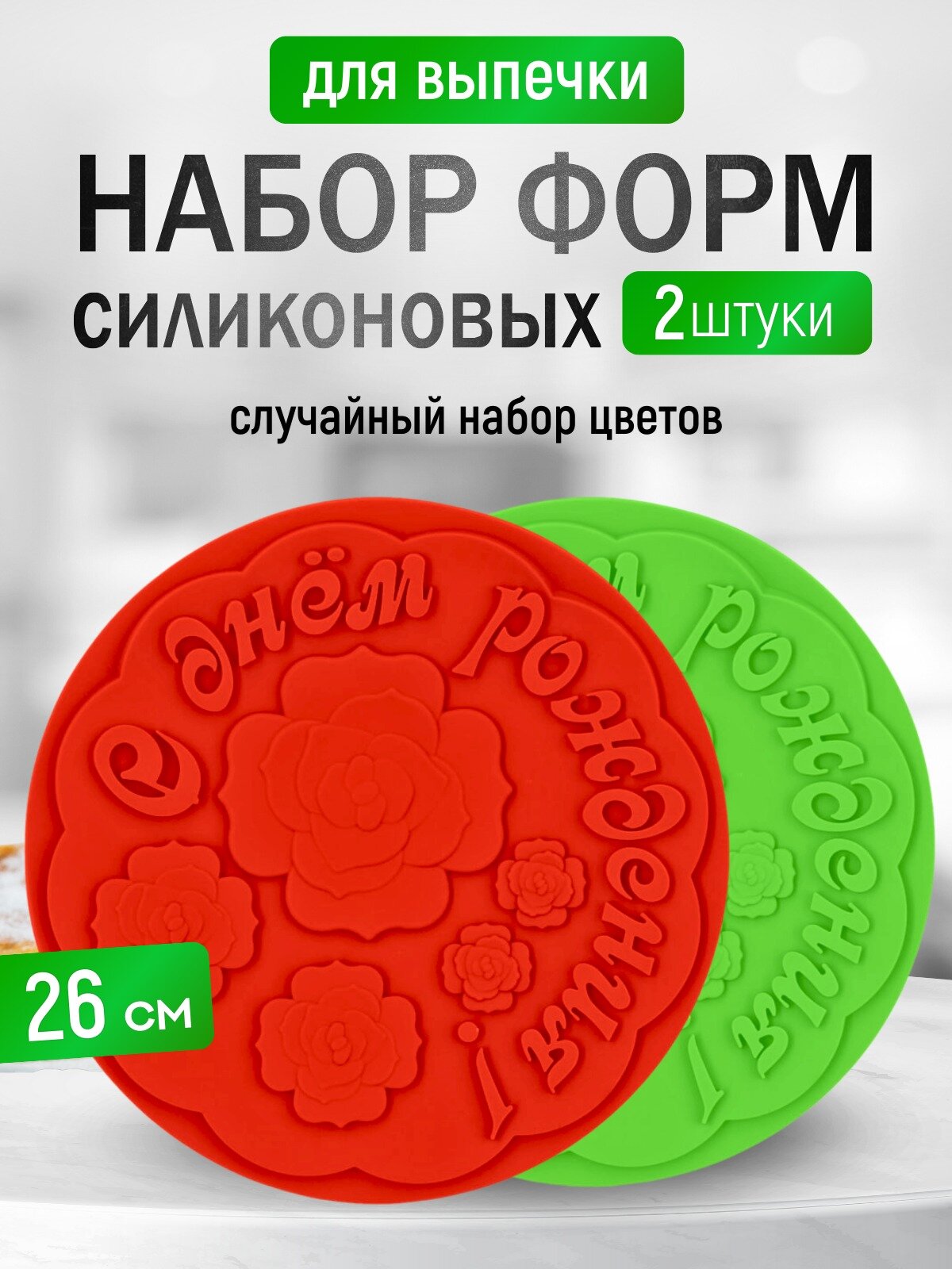 Форма для выпечки круглая С Праздником, силиконовая, набор 2 шт, 26 см, цвет случайный
