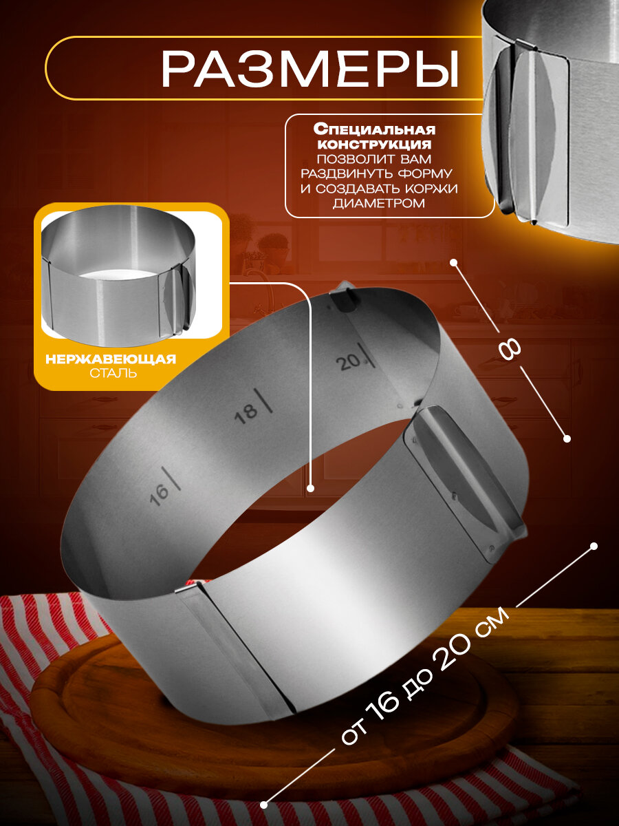 Форма для выпечки с регулировкой размера 16-20 см, высота 8 см интересное: